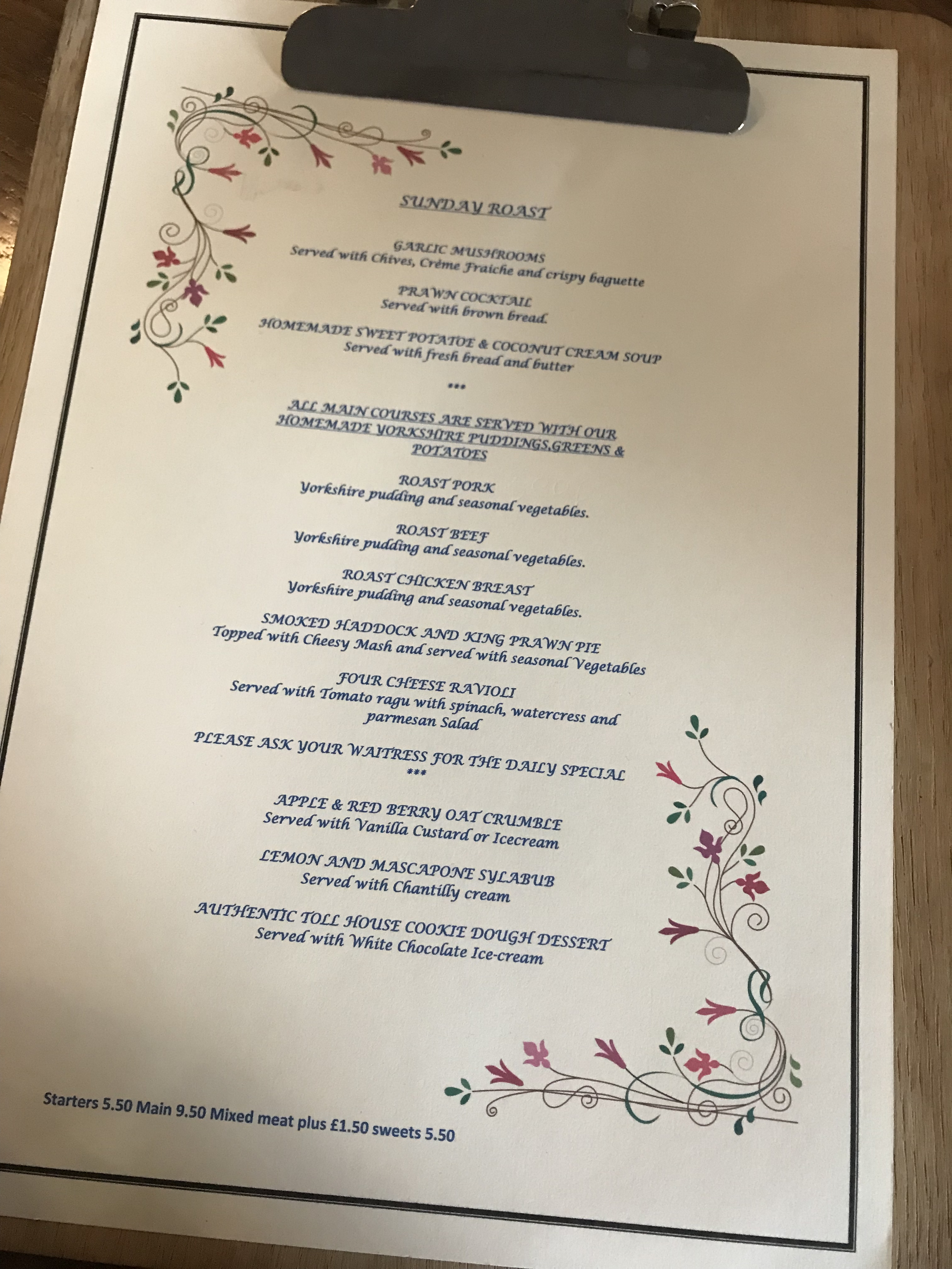 The Hare & Hounds offer a small but fairly traditional Sunday food menu as per the above, focusing on popular homemade dishes. They also offer half portion starters for anyone who doesn’t want to fill up too fast before their main!