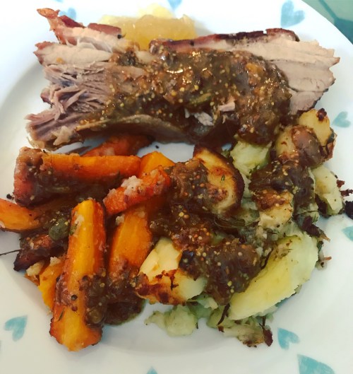 For the gravy we followed the Gordon Ramsey receipe adding mustard to the juices, and I also bought some apple sauce to go alongside too! Beautiful!  We then had Pork Belly sandwiches with lettuce and apple sauce for the next two following days, what a treat!