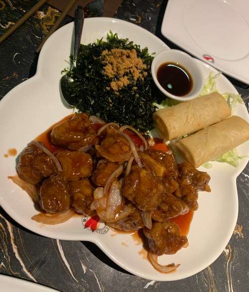 Next course was a plate of Starters; Crispy seaweed – this was ok but not something I would have usually chosen so we didn’t finish this. Pork & Shrimp Spring Rolls – not being a massive lover of Spring Rolls myself these were still good and came with lots of filling. And Spare Ribs in Cantonese Sauce – delicious and lots of them but they might be a bit tricky for some to eat as they were small and in batter, but still had the bones in them, so be careful!