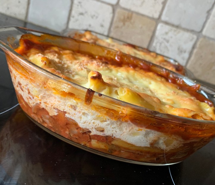 Another absolute fave of mine is the Greek dish Pastitsio. I have cooked a few versions of this, one from a Gousto recipe, and one from the Pinch of Nom book. There were certain differences such as Gousto used lamb mince and required a white sauce made from scratch (a roux sauce of flour, butter and milk whisked till thick), whereas the Pinch of Nom used beef mince and the sauce was a lot easier to make just mixing eggs and yogurt and leaving the oven to do the work of thickening the sauce. I enjoyed both of course. Check out both recipes here.