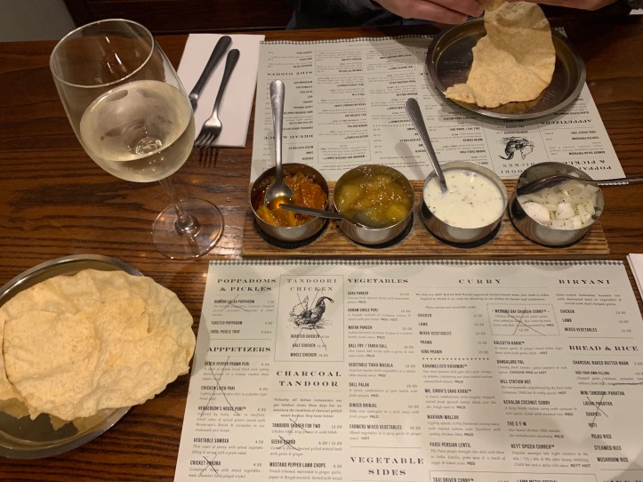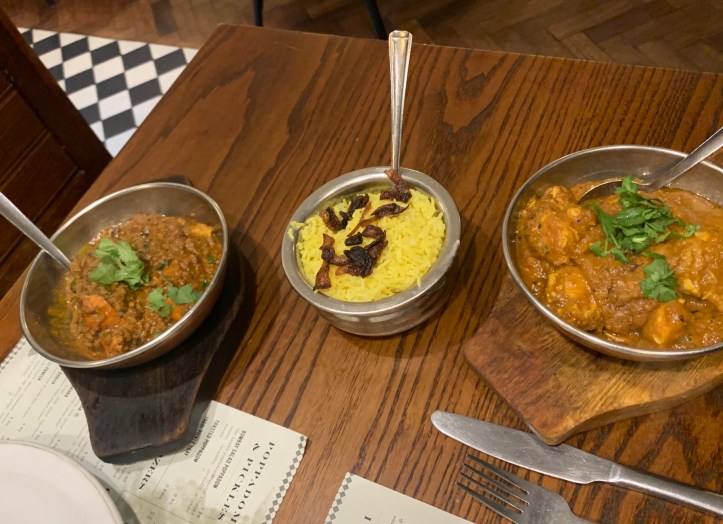 When our bill came, so did a little cast iron pan with a pot of hot water to pour into the pan and create your own little hot towels – a cute little touch, little mint chocolates – always a classic after curry treat, oh and we got a little freebie to take away too – a pack of Indian biscuits! They were like small malted milk biscuits and were munched up the following day 🙂