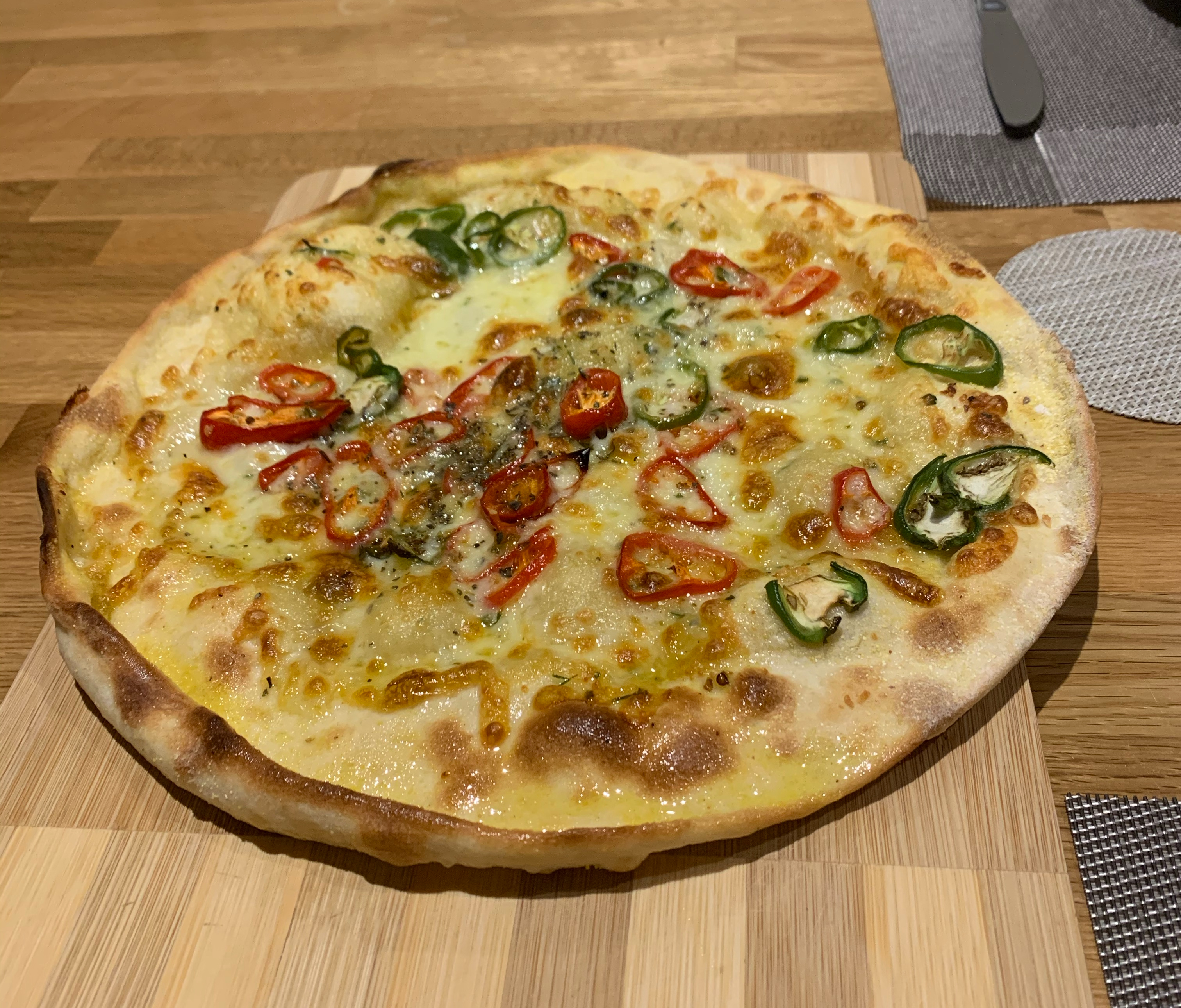 Of course we couldn’t not have garlic bread to share too and we are so glad we did! Beautifully thin, crisp crust, very garlicky and lots of heat from the chillies – possibly the best garlic bread I’ve ever had and I could eat it again now writing about it haha.