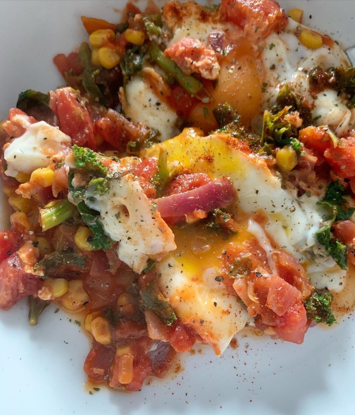 This refreshing, vibrant and healthy North African dish is perfect for a weekend breakfast and is very versatile for using up any leftover ingredients you may have in the fridge! The base of the breakfast is basically chopped tomatoes, eggs and some herbs. Here’s an easy and delicious Shakshuka recipe I made recently using up my leftovers;