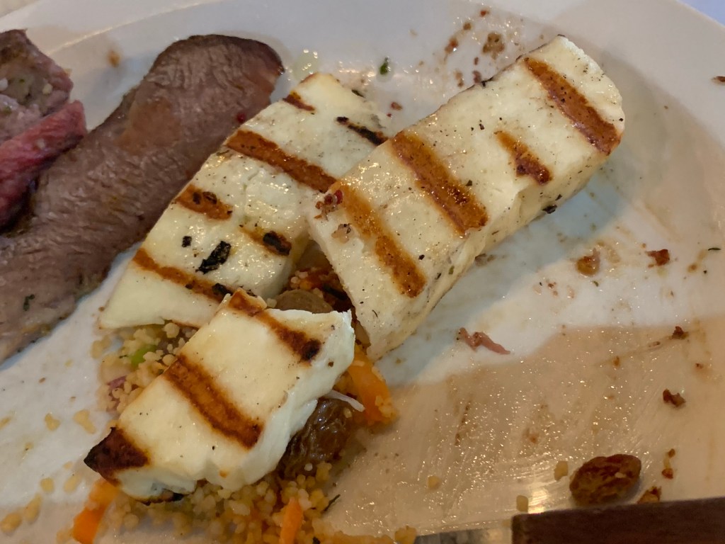 The pork belly was beautiful and I believe it was marinated in honey – lovely and sweet. The garlic steak and the chilli beef were both very flavoursome. The halloumi – well it was amazing as halloumi always is! Even the chicken wrapped in bacon was really good as the bacon was quality, thick cut bacon. Out of the 10 meats I tried there was just one piece of steak that was a little tough, but the rest was perfect.