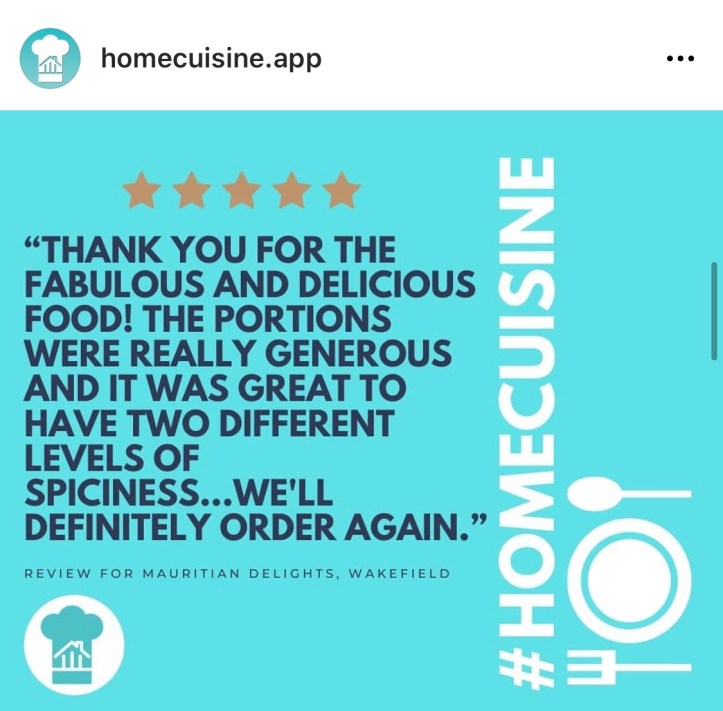 This week I enjoyed being a customer of the HomeCuisine app and a local “Home Chef” trading by the name of Mauritian Delights based in Tingley, Wakefield (Very local!!). The app basically works in the same way as apps such as FoodHub and Just Eat however you are ordering fresh, homemade meals from local chefs cooking straight out of their kitchen.
