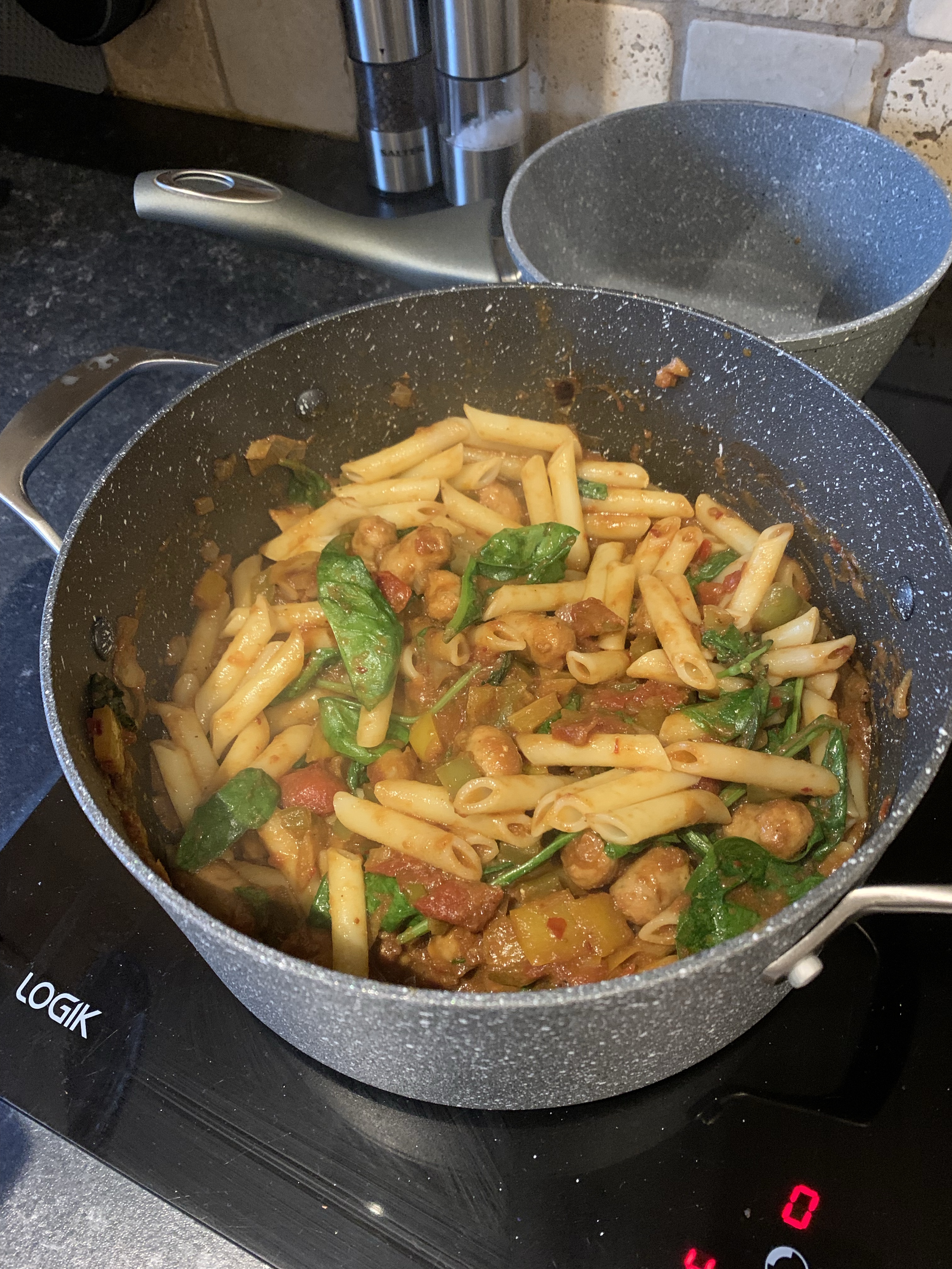 I love boshing together pasta dishes, making them up as I go along, and this one turned out a beauty! This dish provides a fabulous base sauce and is versatile to use any meat/vegetables that you may have in your fridge to suit! It’s super easy, and only 430 calories per portion which is amazingly low for such a tasty, filling meal. Perfect for all the family too. Why would you not give this a go?