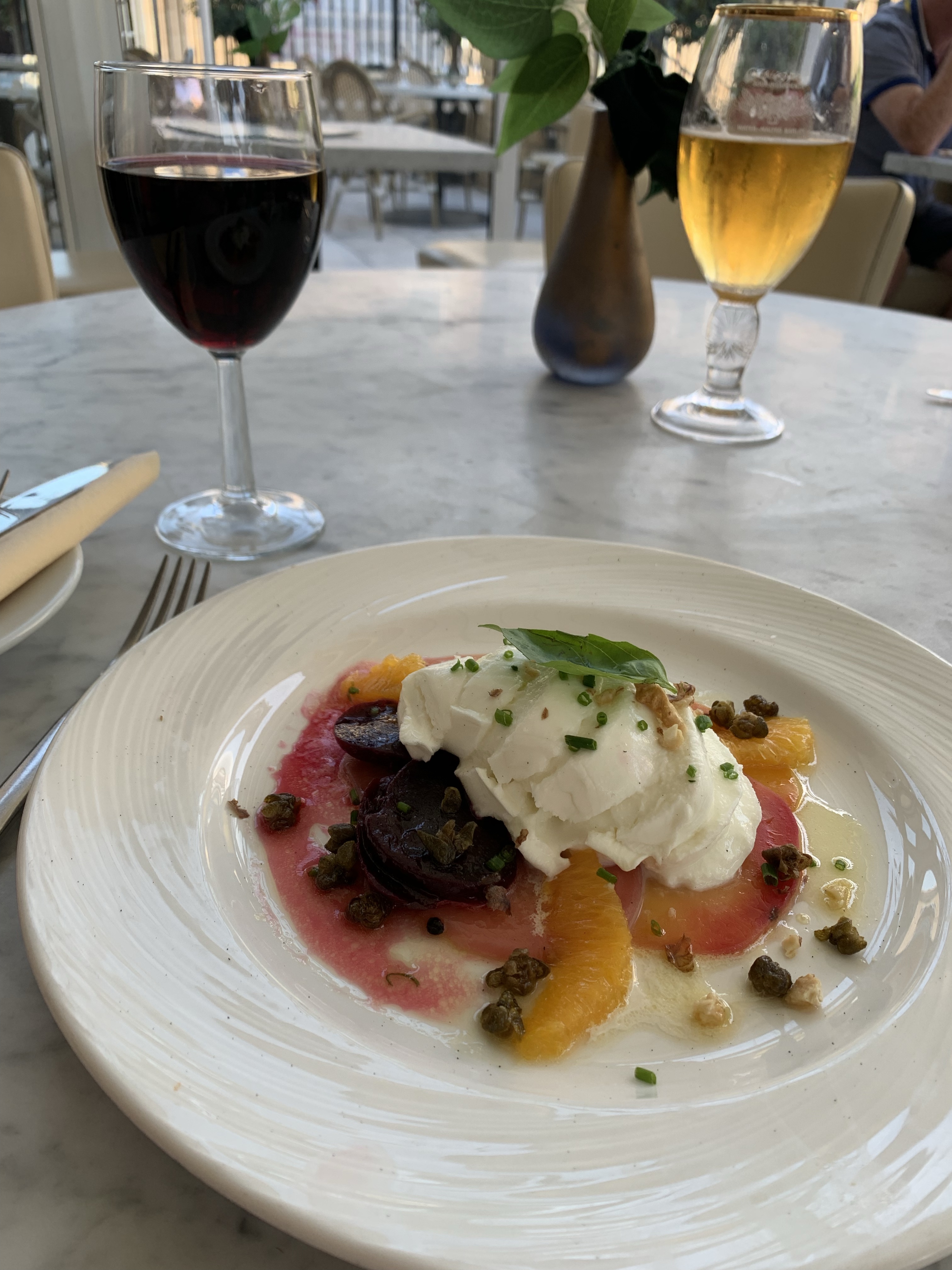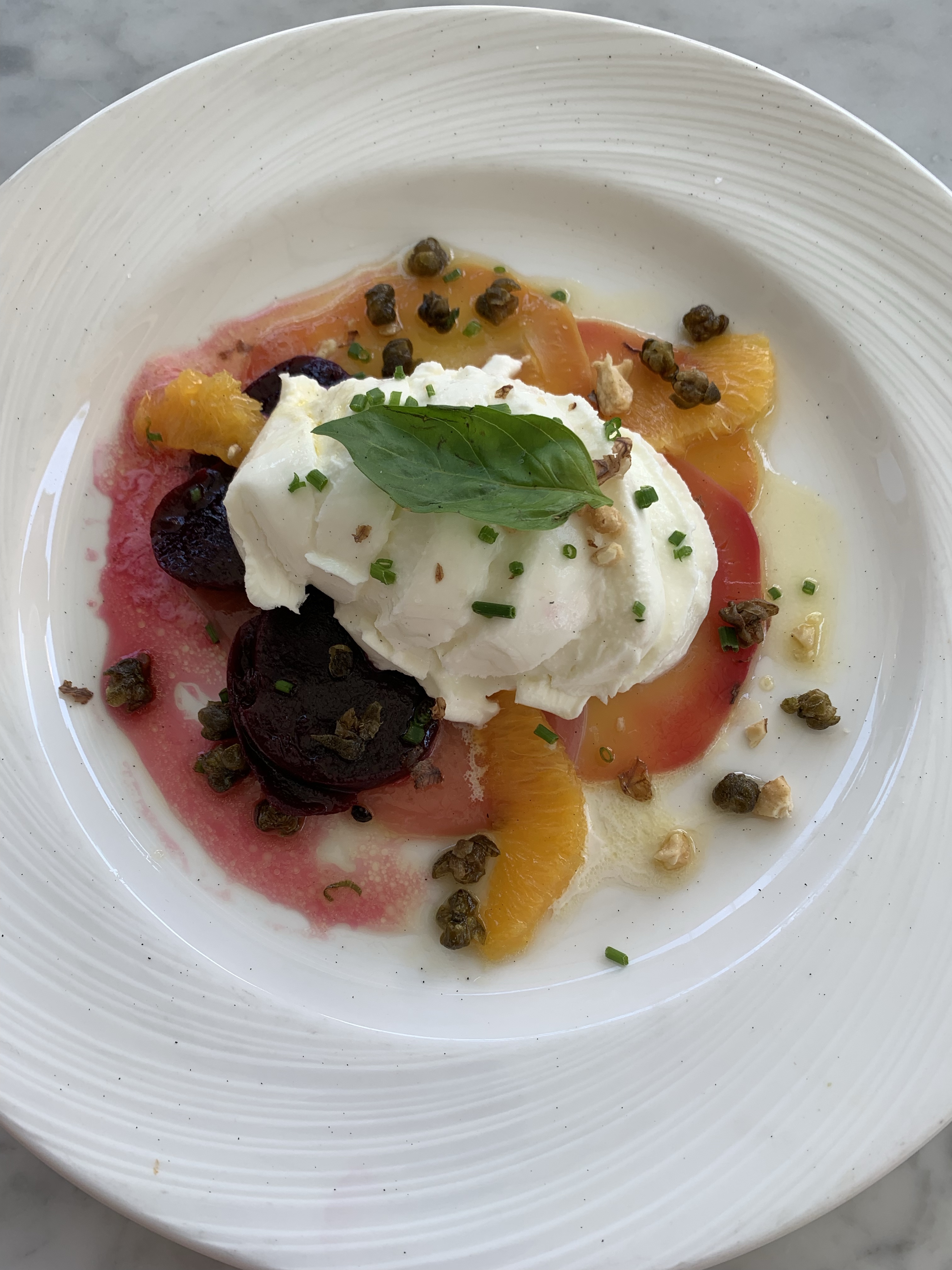 For my starter I went for something refreshing; CAPRESE DI BARBABIETOLA – Slow cooked beetroots, topped with Buffalo mozzarella, toasted walnuts with orange segments and fried capers. Dressed with orange and chive vinaigrette dressing. This was tasty, light and refreshing just as I hoped it would be and I was always going to be happy with a whole ball of mozzarella just for me 🙂