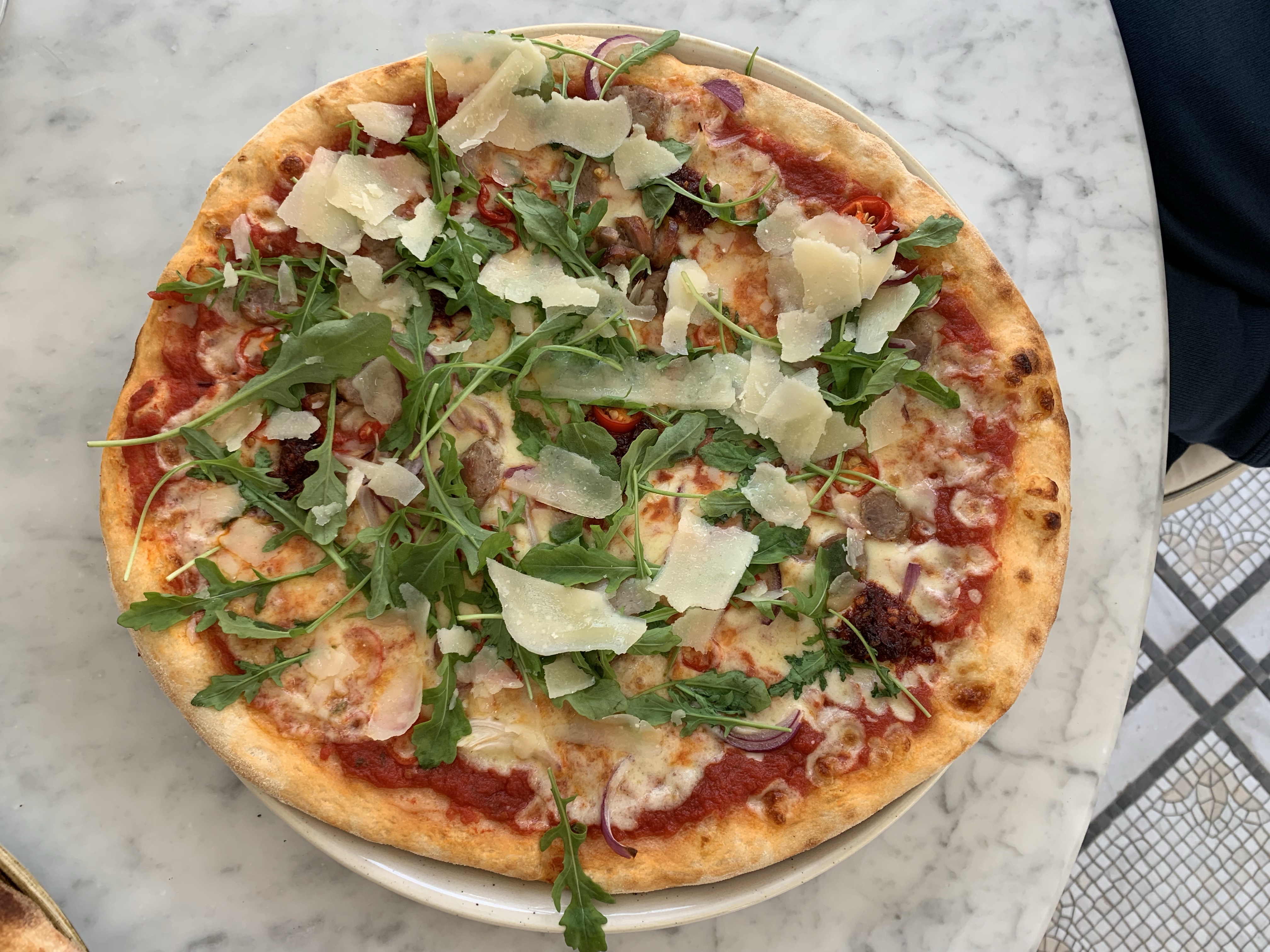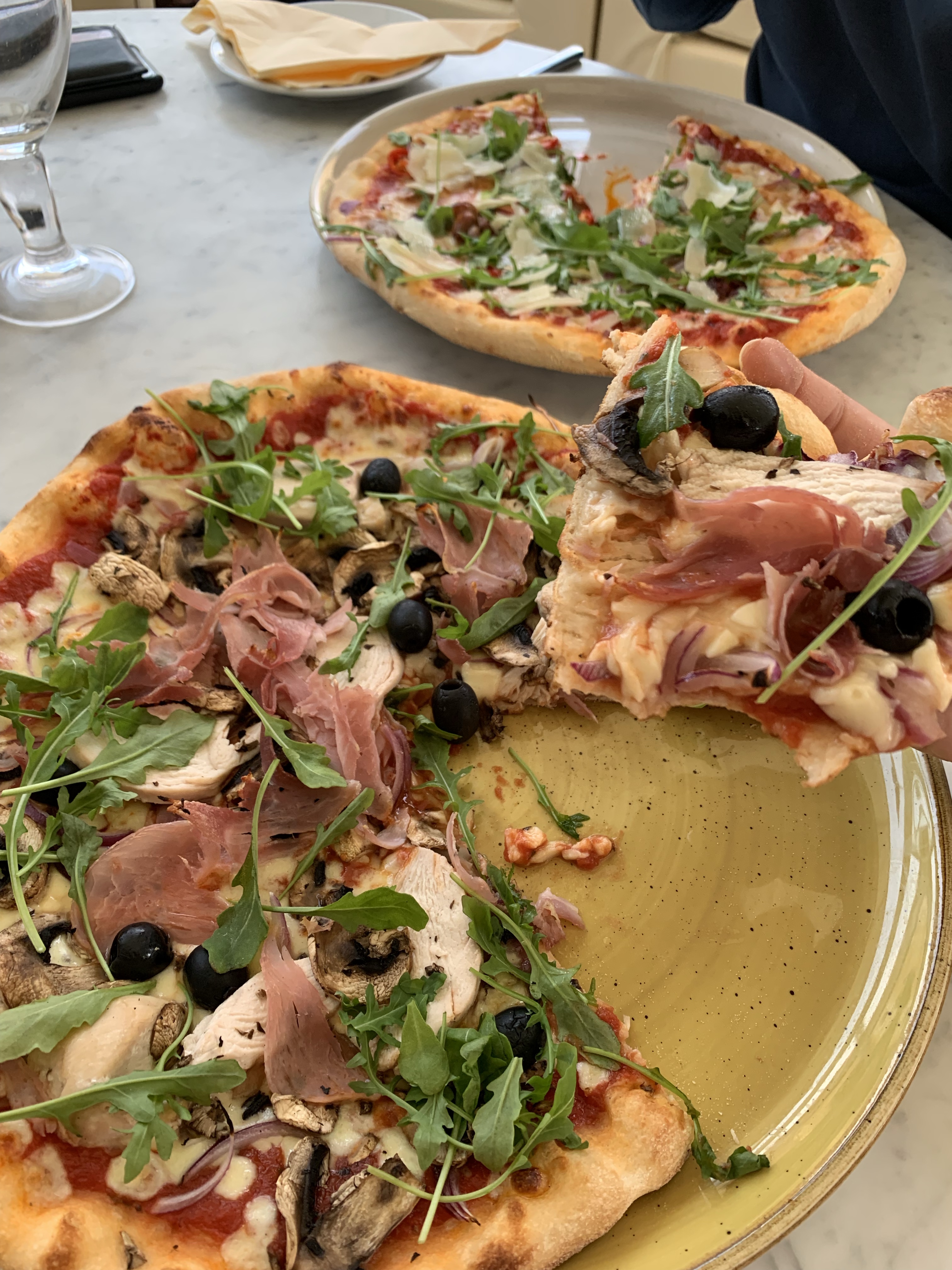 The pizzas looked large but there was so many delicious sounding options on offer so we decided to order 2 and share (and we ended up with lunch leftovers too!). We went for;