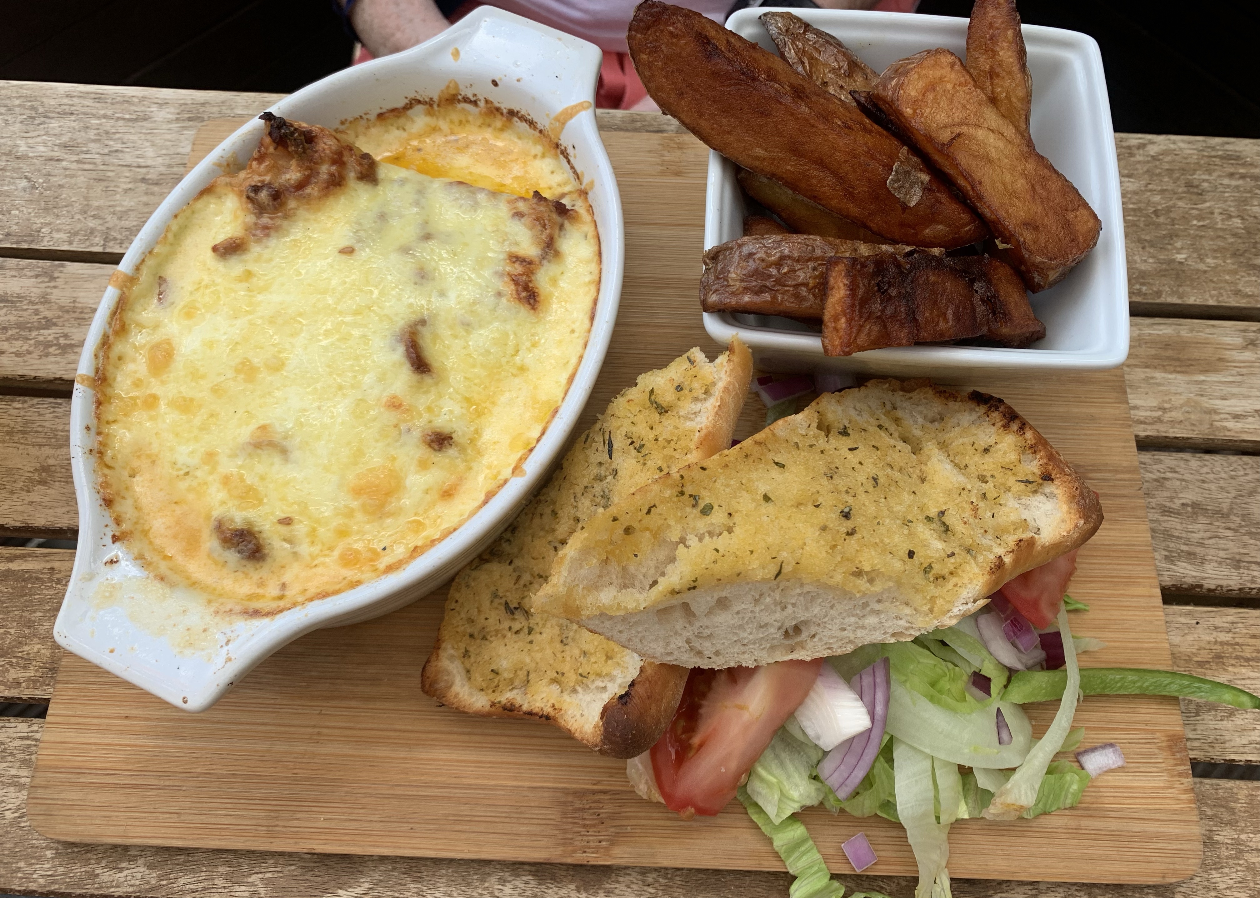 Beef Lasagne (Vegetarian option also available) accompanied with garlic ciabatta, chunky chips and fresh side salad. Quite a big portion so make sure you’re hungry, but tasty and comfort food at it’s best!