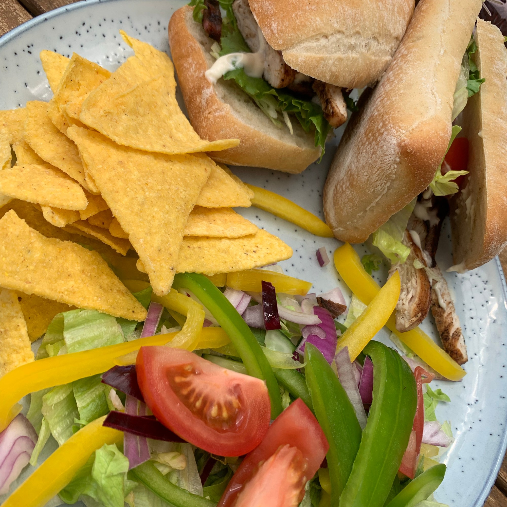 Chicken BLT – served in ciabatta bread with mayo and with a side salad and tortilla chips. This was a great portion for a lunch time and was just right with lots of fresh salad on the side. Couldn’t fault it to be honest.