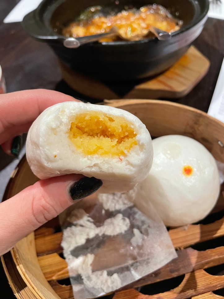 I also treat myself to a bit of a dessert of Custard buns as I had seen these previously and was intrigued. These were cute little steamed buns filled with a sweet, almost coconutty thick custard (not runny) and they were so sweet and satisfying, I JUST managed to save Ben one to try haha.