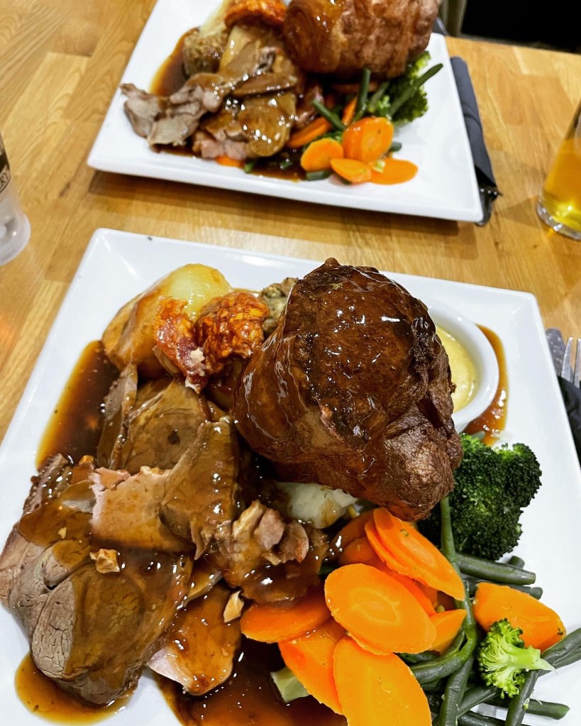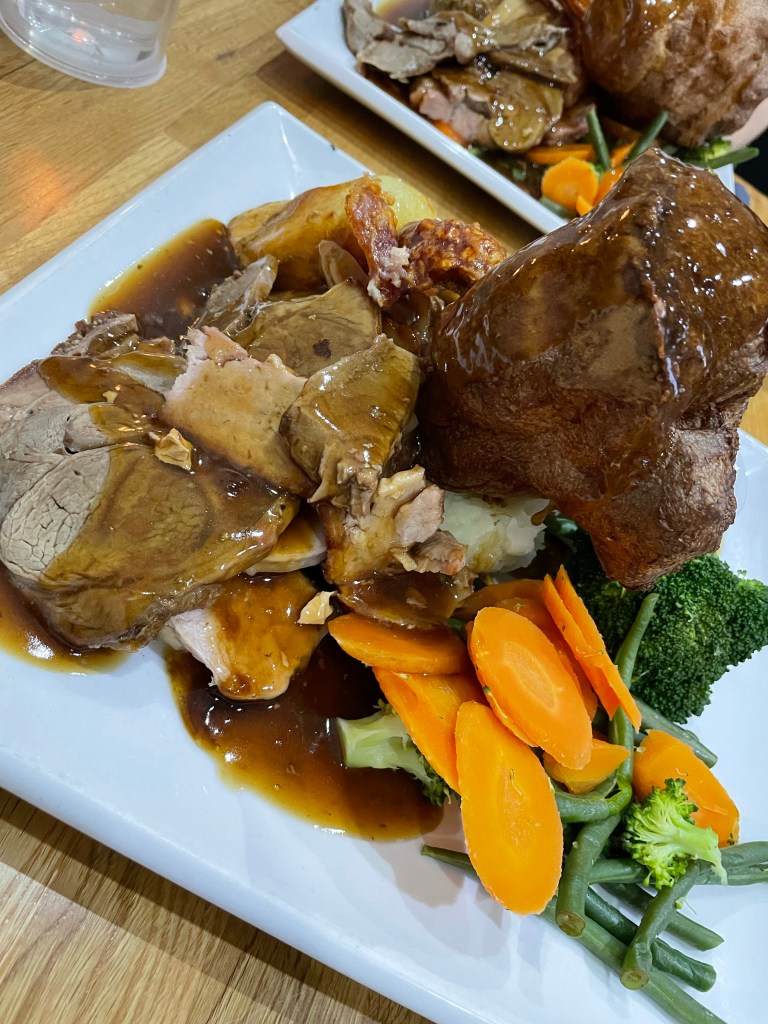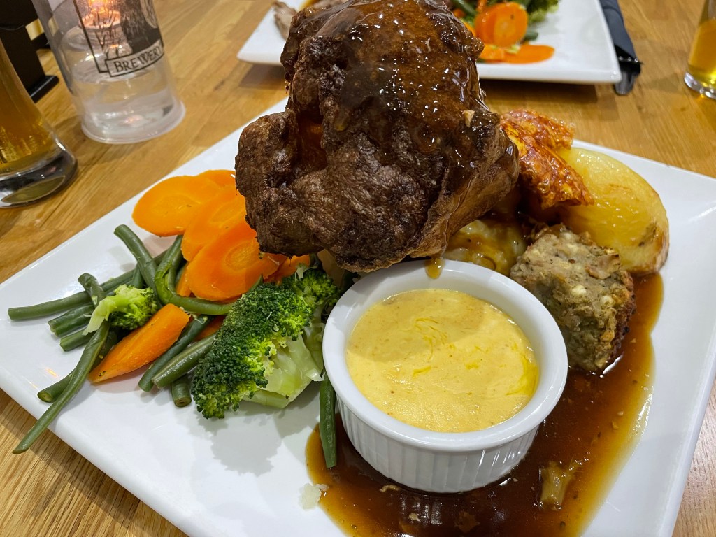 Sunday Roasts here consist of a freshly roasted meat selection (of which you can choose up to 3 of them!) served with roast potatoes, mashed potatoes, seasonal vegetables, Yorkshire pudding, gravy & Wisey cheese sauce. If you wish you can also opt for a smaller portion at less of a price and they cater for children’s portions too. As always our eyes were bigger than our bellies and we stuck with the usual adult portion.