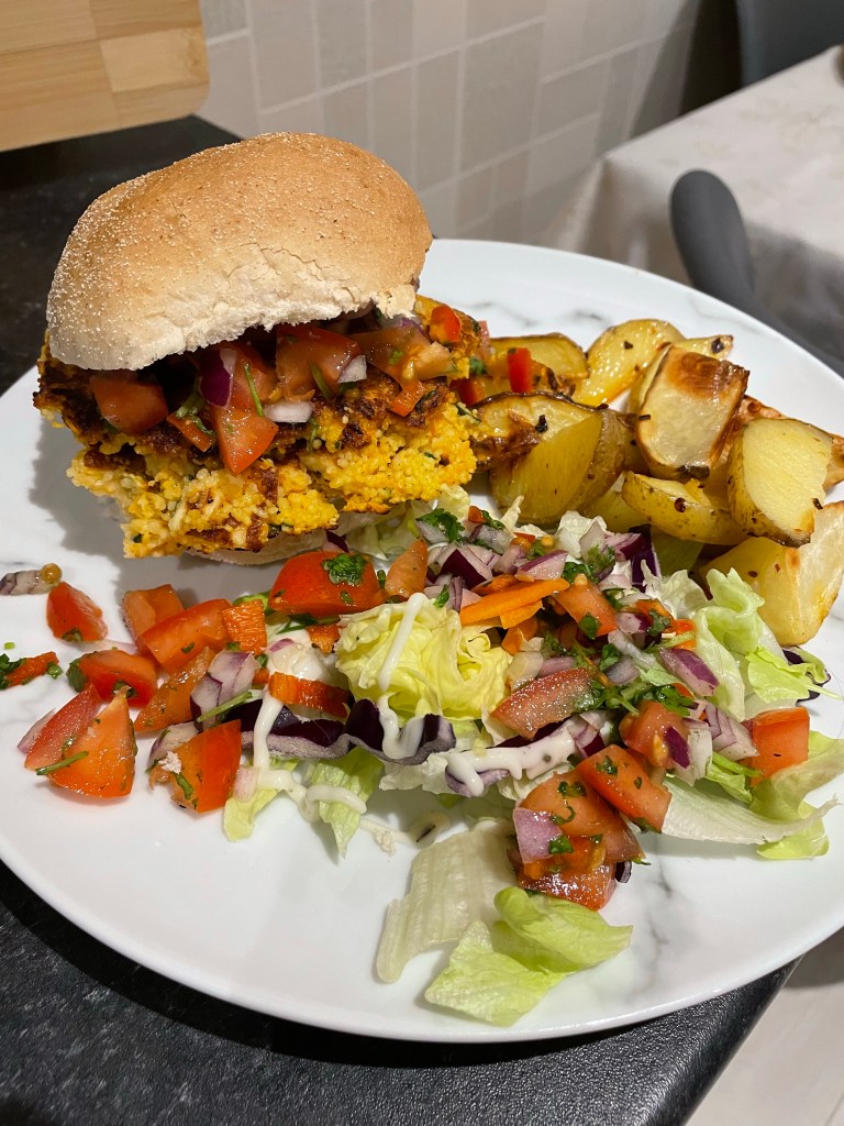 Halloumi Couscous Burgers with Salsa (Fakeaways) 401 calories – A really tasty veggie burger with lovely, fresh salsa. On it’s own I would say it’s more of a lunch-time meal and the calories noted are only the burger and salsa with no bun etc, so I added homemade chips and some salad as well as serving in a bun. Perfect!