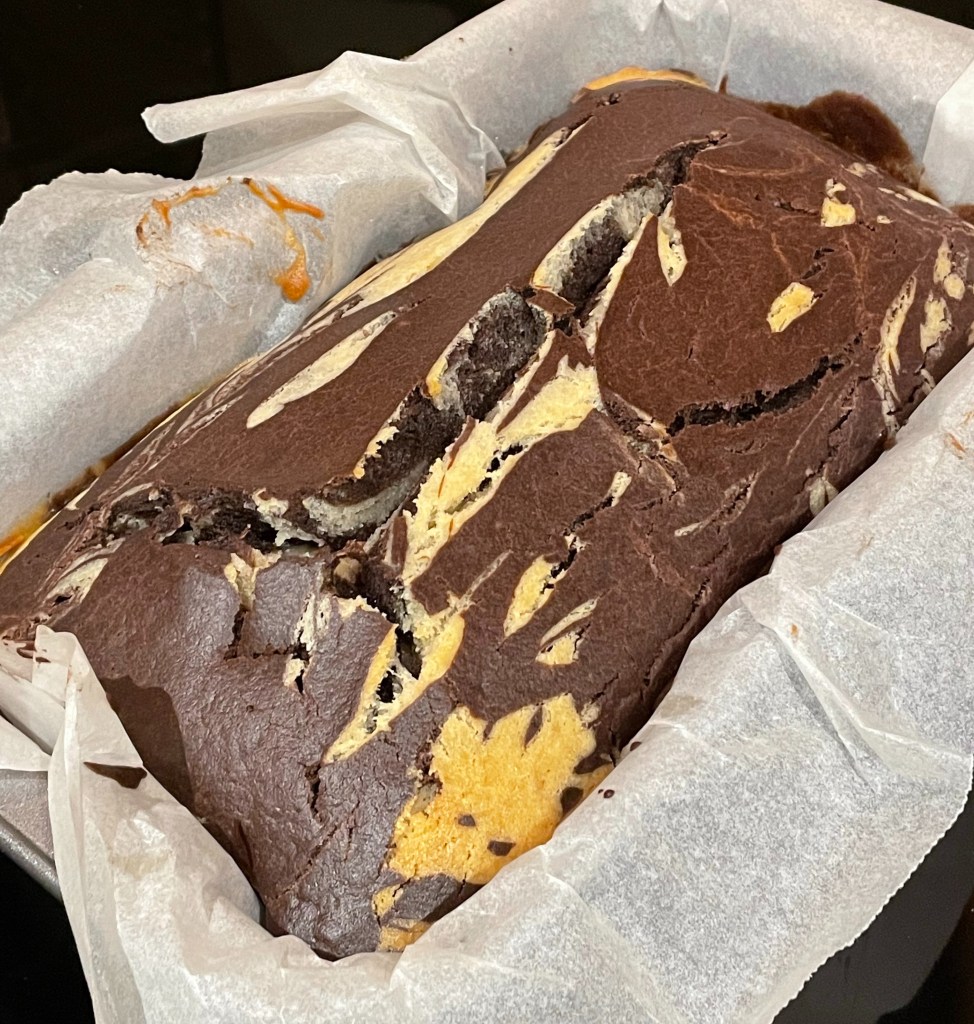 This recipe is vegan-friendly and is quite a lot less calorific than the standard recipes I have come across. If I had to amend anything I would say it possibly needed a little more vanilla flavouring, and a little more sugar/sweetness for me. But the texture came out perfectly β crisp on the outside and soft and light on the inside. And look at my marbling !! So proud π