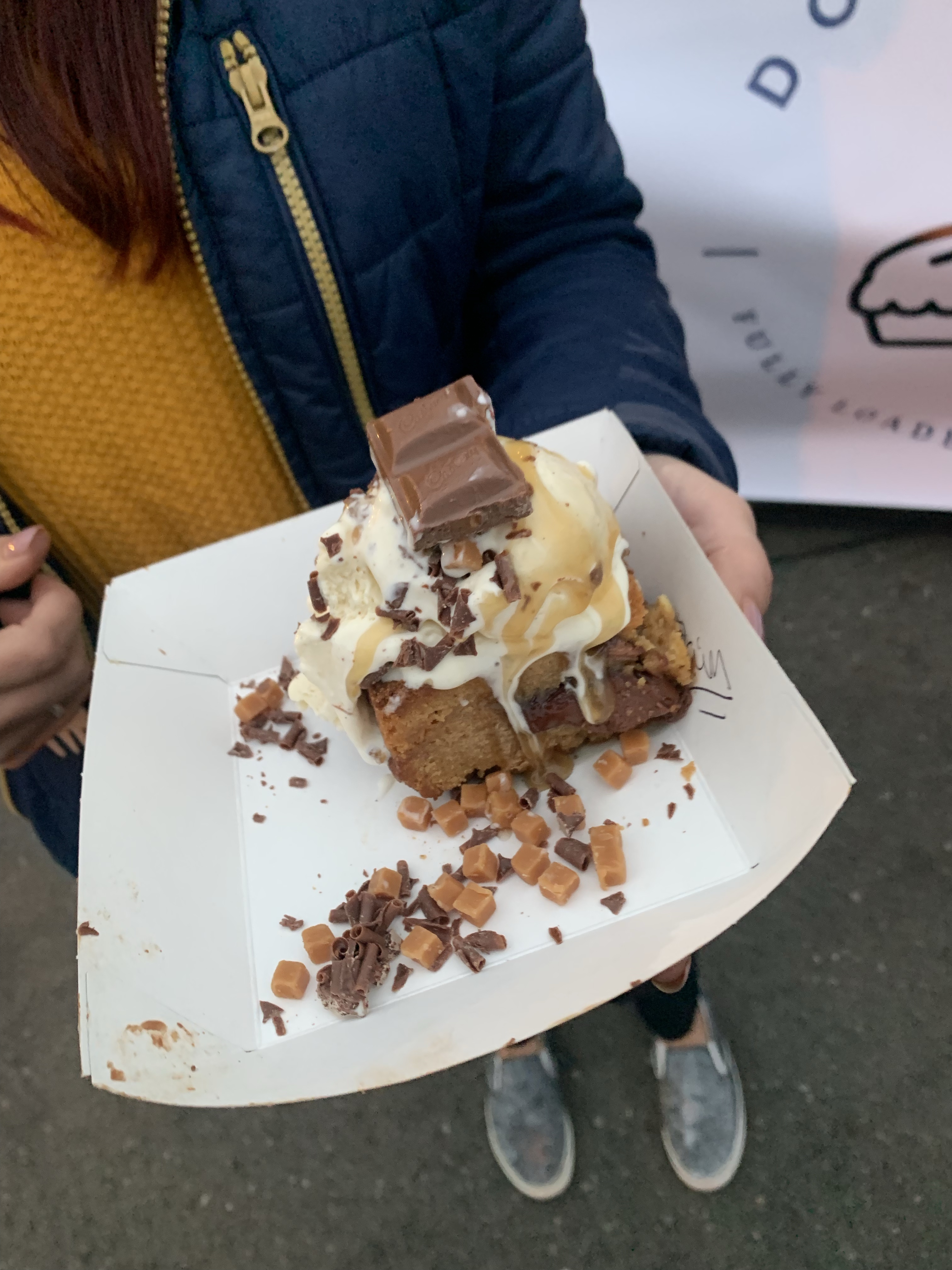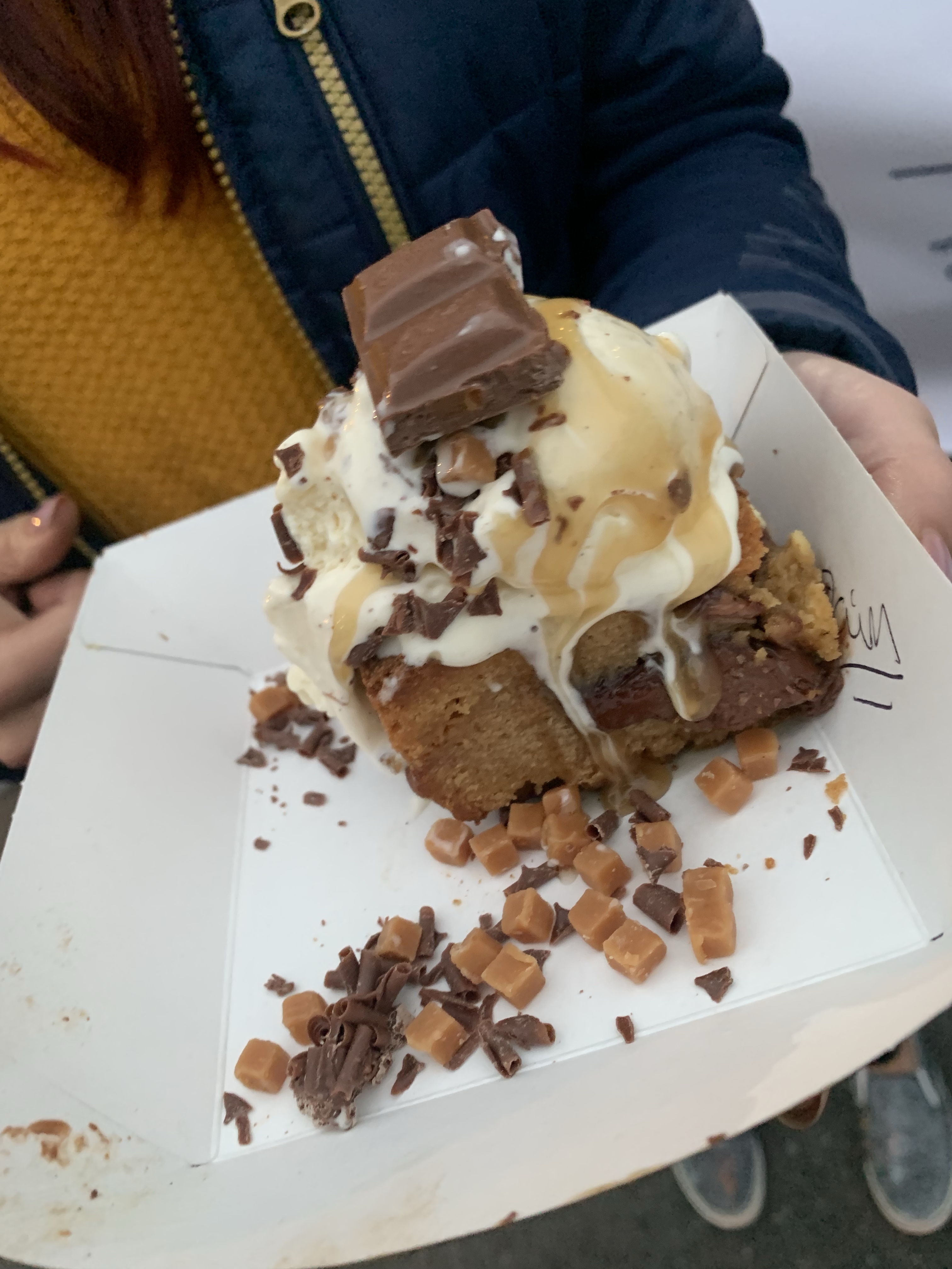 BUT. I could not leave Suppa Club without a dessert when they looked so amazing! Dough Bois, a local and fairly new pop-up food vendor, serves fantastic loaded cookie dough slices and they are so pleasing to the eye I had to have one! I went for the “Don’t Give a Daim” which was cookie dough filled with Nutella, topped with ice cream, caramel sauce, caramel and chocolate pieces and Daim bar. As someone that has a particular sweet tooth this was sickly, sweet and bloody gorgeous. It did defeat me a little though so Ben had to finish it off but I am so glad I tried it!