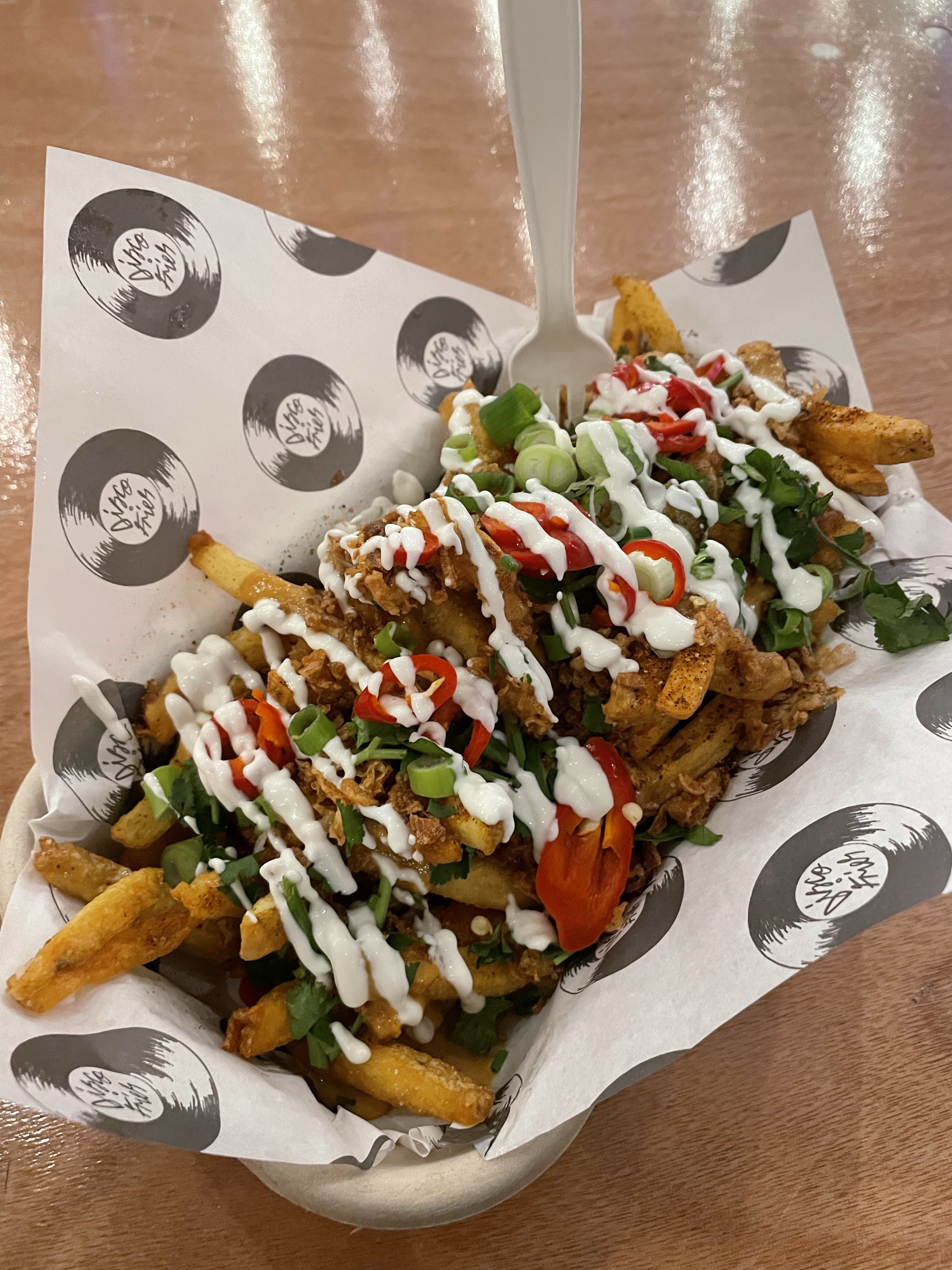 - Disco Fries – biggest queue I’ve stood in for a while and a few options had sold out whilst we were waiting (which only shows how popular and decent the fries are. We went with the Satay Night Fever – salt & pepper chips with peanut sauce, spring onions, chilli, coriander & mayo. These fries were worth the wait but I did really want to try the Chicken Kiev topped fries that sold out, maybe next time. Another stand-out brand.