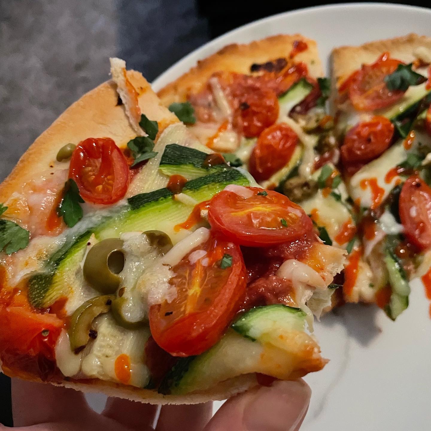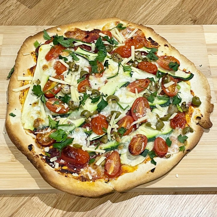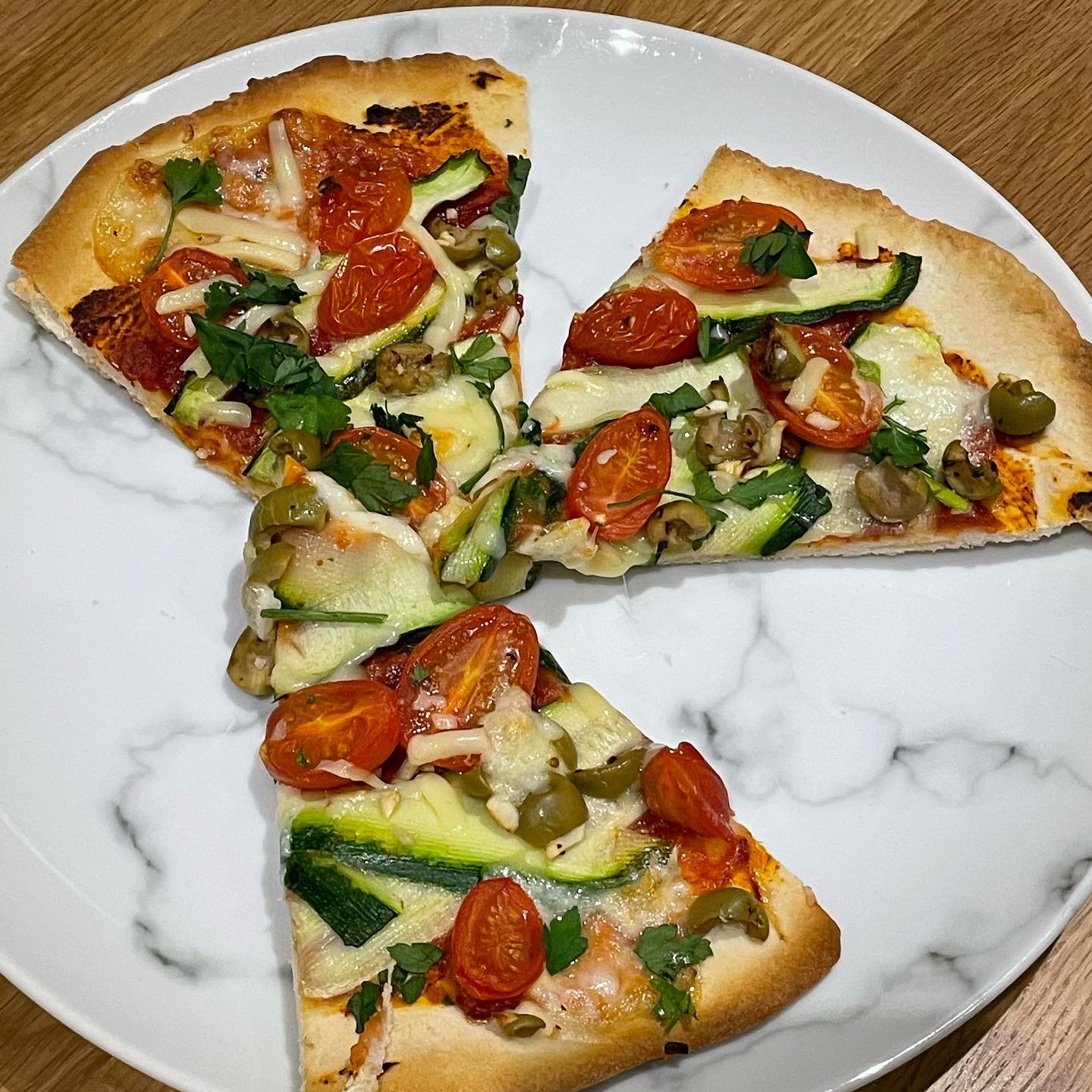 Sometimes you just want a pizza, plain and simple. However for those of us that are being more calorie conscious, a pizza can be a very calorific, guilt-ridden meal choice. So I gave this healthier recipe a go, and honestly, we loved it!! Yes it’s not that greasy, stodgy mess that you crave sometimes. BUT it was fresh, crispy, tasty and satisfying – perfect for a mid-week “treat”. Oh and not only that, it didn’t mean an arm-long list of ingredients and was quick & easy to make. Total calories = Approx 400 cal per portion (half a pizza).