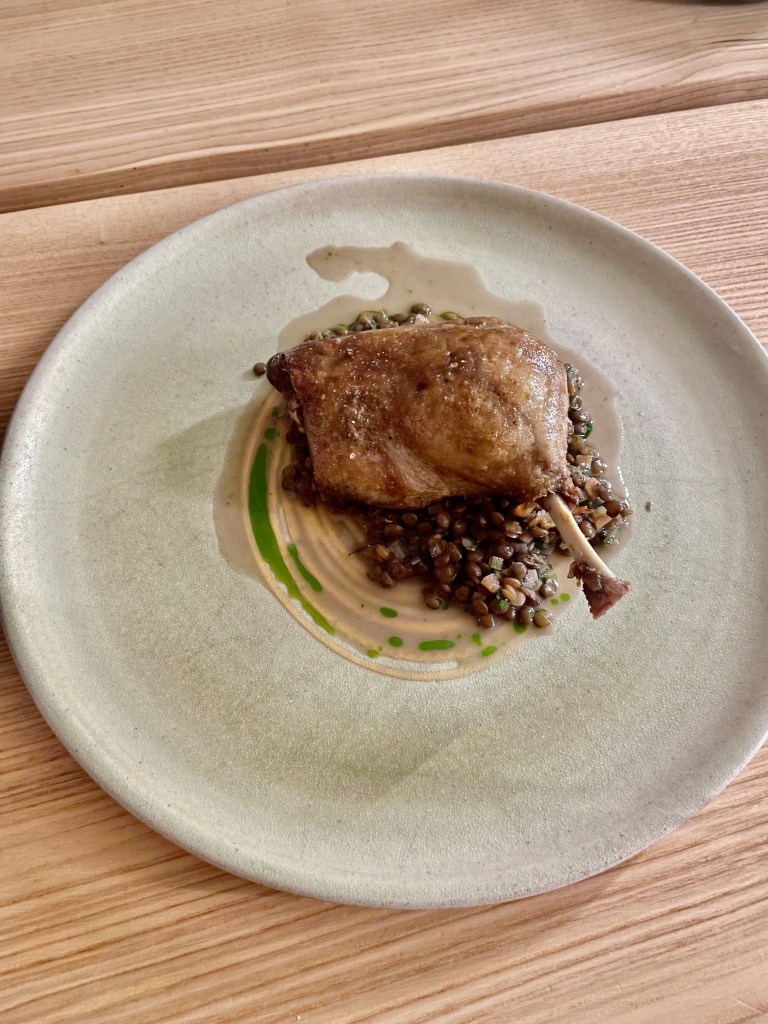 - Confit duck leg, with lentils. Brilliantly cooked duck, we shared 2 of this course between us and it was just the right amount of food to give us a great taste.