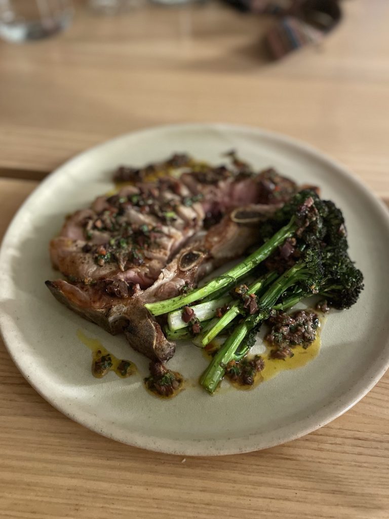 - Rare breed Pork chop, broccoli, purple love and anchovy. Potentially my favourite course. Juicy pork, cooked so well and the ingredients complimented each other amazingly.