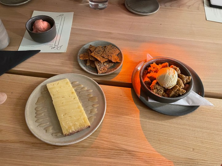- Dessert – Yorkshire rhubarb & apple crumble with Earl grey ice cream. Who doesn’t love a crumble? Sugary and lovely. I don’t actually remember the ice cream unfortunately, which may not be a bad thing as I can’t imagine i’d like that flavour but I clearly did haha!