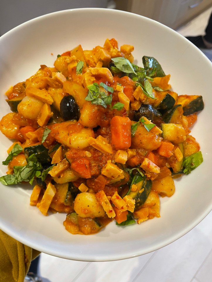 - At this stage I added my gnocchi to boiled water however I wasn’t happy with how this turned out and have been advised to bake or fry the gnocchi instead of a better texture. Therefore at this stage I would add the gnocchi to the pan and stir regularly, heating the gnocchi through and adding a bit of colour to it, ensuring you keep the right texture desired (not mushy).