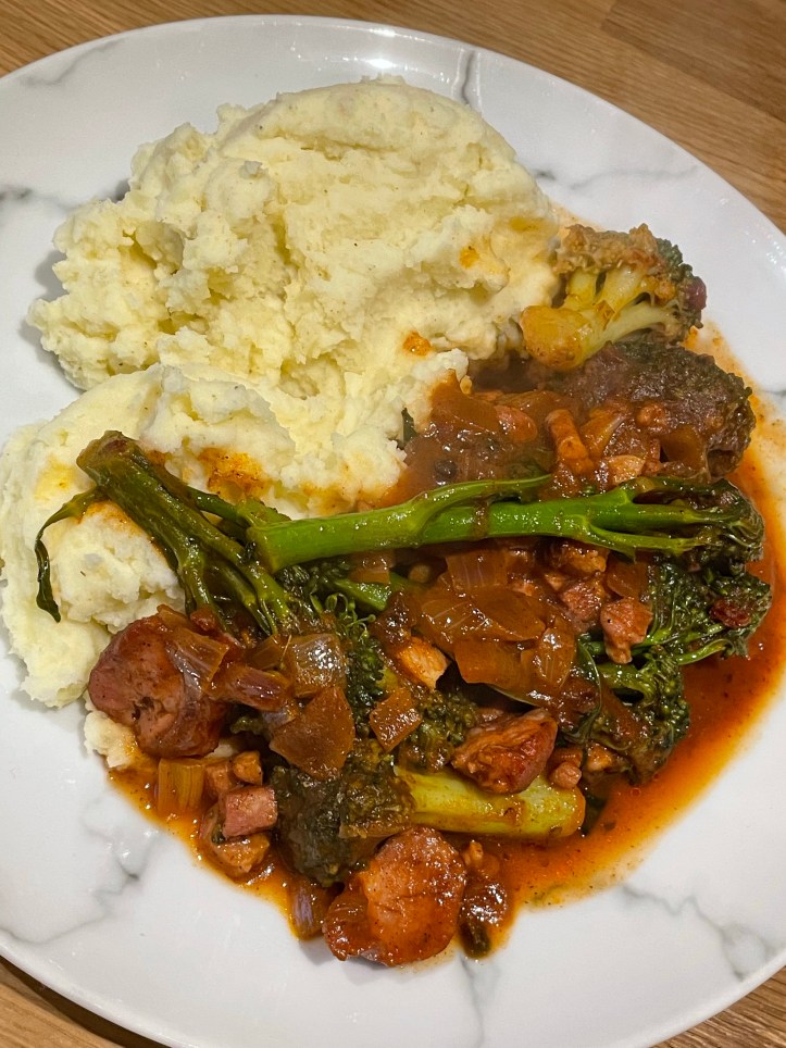 Don’t be misled by the name of this recipe, if a meal entitled “broccoli” always tasted like this one, I’d be very happy! I got the inspiration for this one from my Polish cookbook by Alina Kowalska (with the odd tweak) and loved it – the added crushed cumin to the mashed potatoes was a lovely addition. Such a tasty and warming dish for all to enjoy. Total calories = Approx 709 per person.