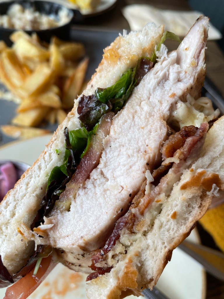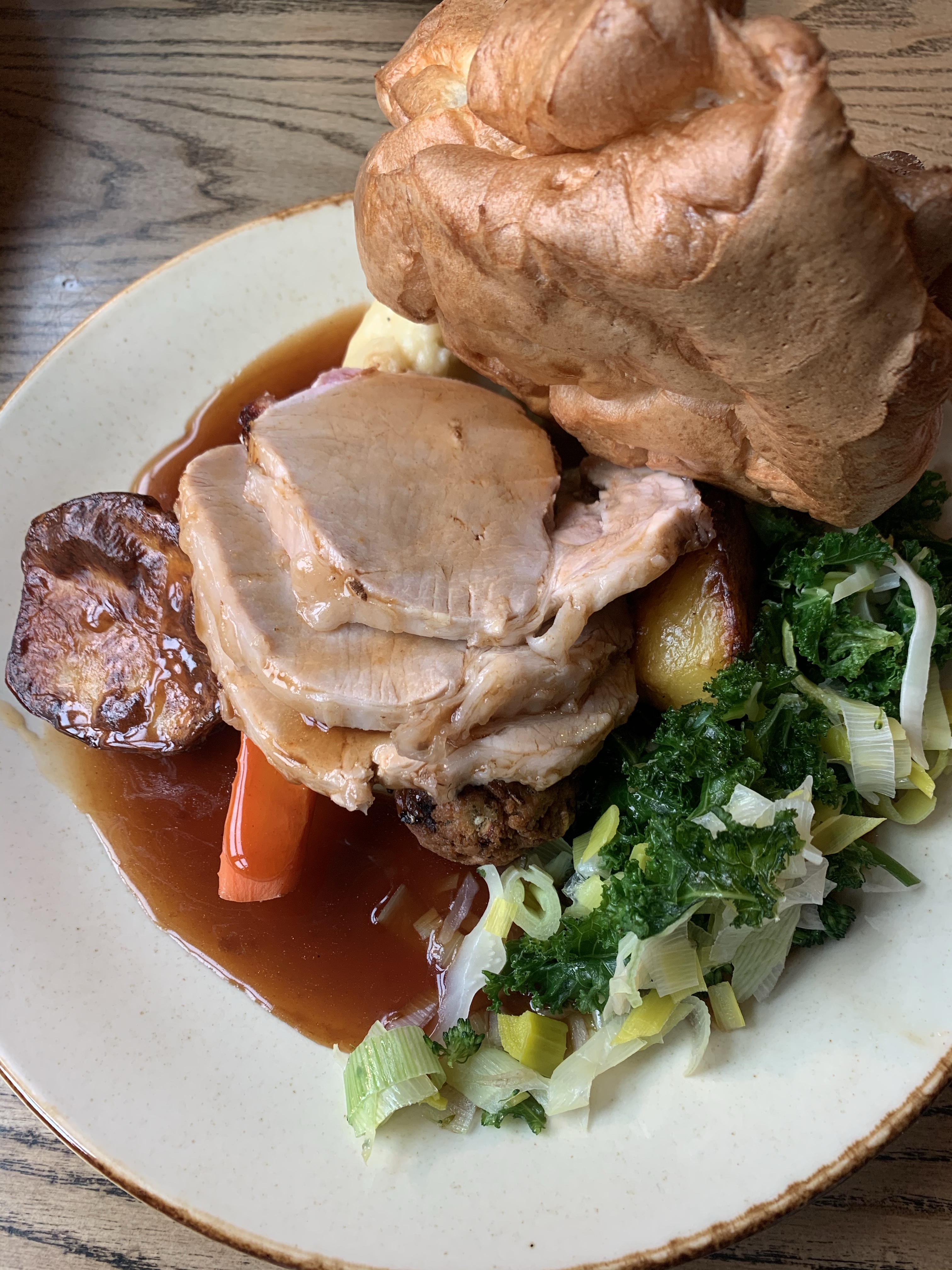 We walked in on a Sunday afternoon and were able to get a table for 2 no problem. The options for the Sunday Roast were Beef, Pork and Chicken, we chose the Pork. When the food arrived my eyes were definitely too big for my belly! 3 BIG slices of gorgeous pork was served with roast potatoes – which were crisp and delicious, mash potato – creamy and yummy, carrots, leeks and broccoli – all cooked really well, stuffing, and topped with a large Yorkshire Pudding (of course) and served with lots of gravy. If you come here for a Sunday dinner DO NOT fill up on the Starters and don’t expect to want a Dessert afterwards (how about buy some Bakewell Pudding to take home for later like I did 😊). Absolutely banging food, which defeated me on that day unfortunately (won’t lie, I was a tad hungover). However the food was delicious and I would definitely recommend coming here for Sunday Dinner.