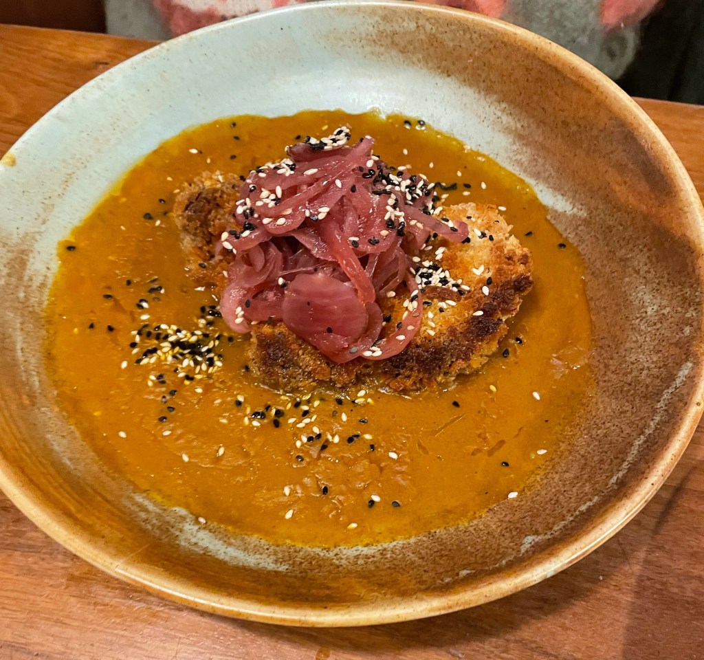 My friend opted for the cauliflower Katsu Curry which was presented really well and tasted delicious, although was a bit of an over-facing portion. This came with Jasmine rice, pickled red onions and sesame.