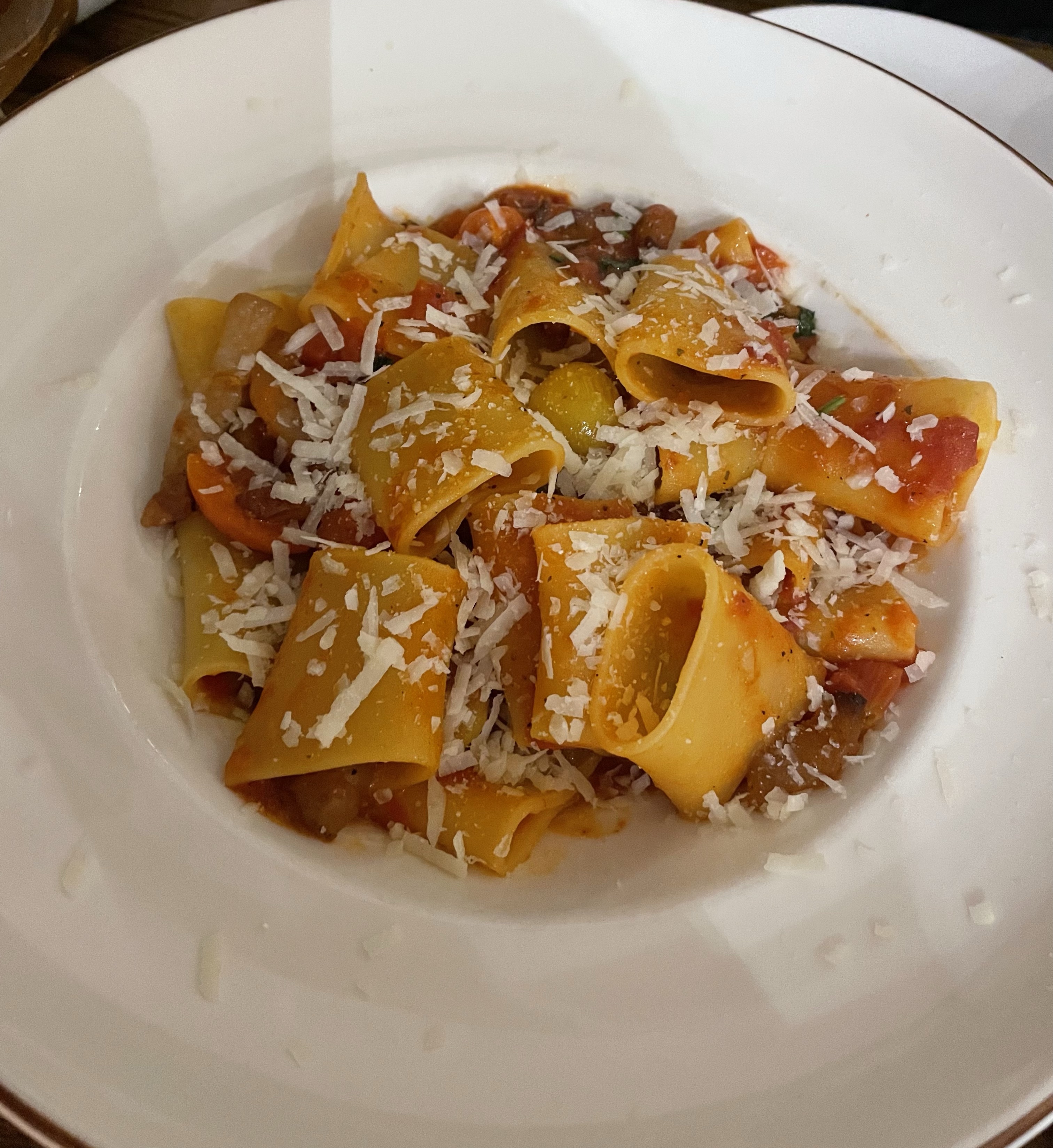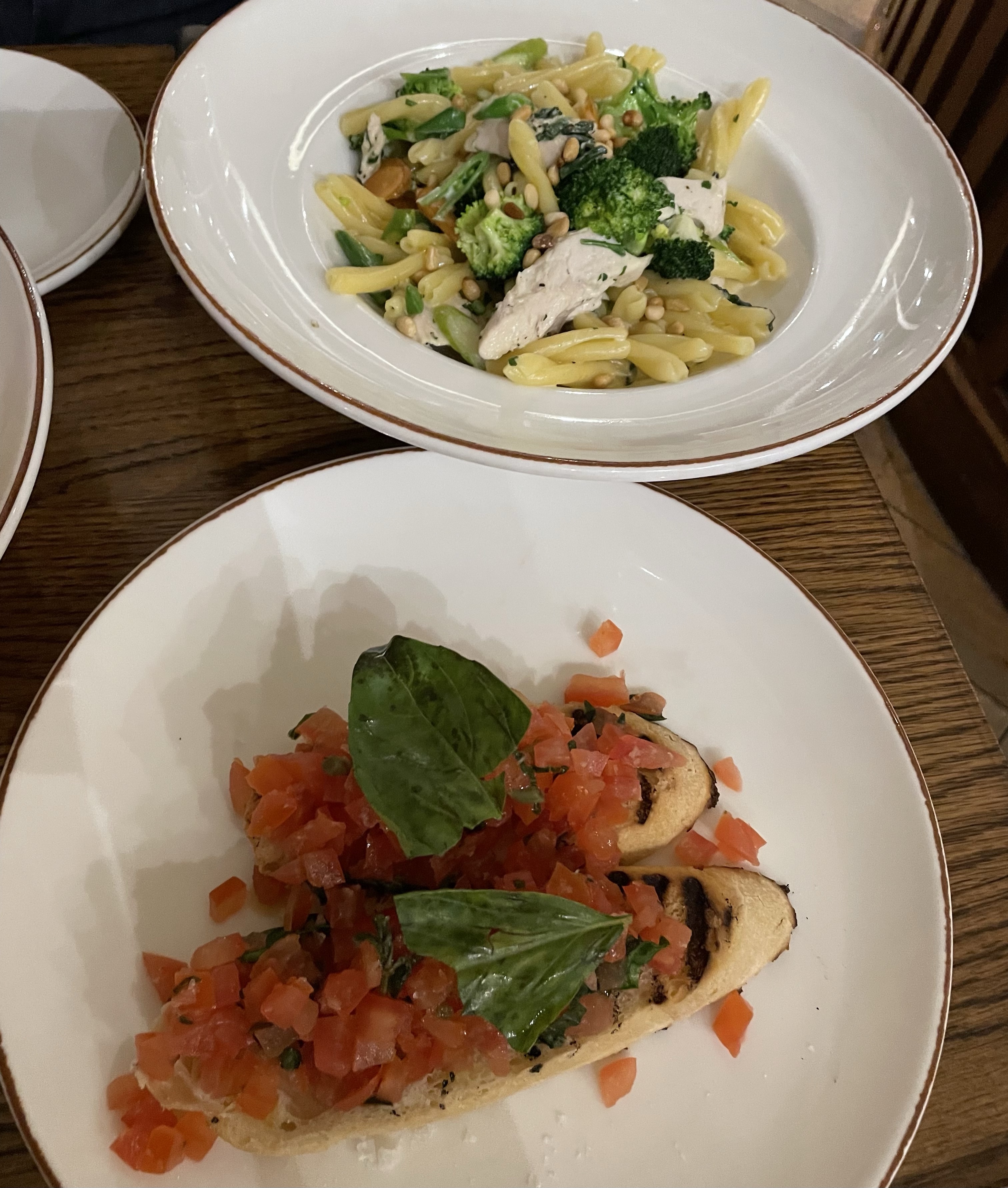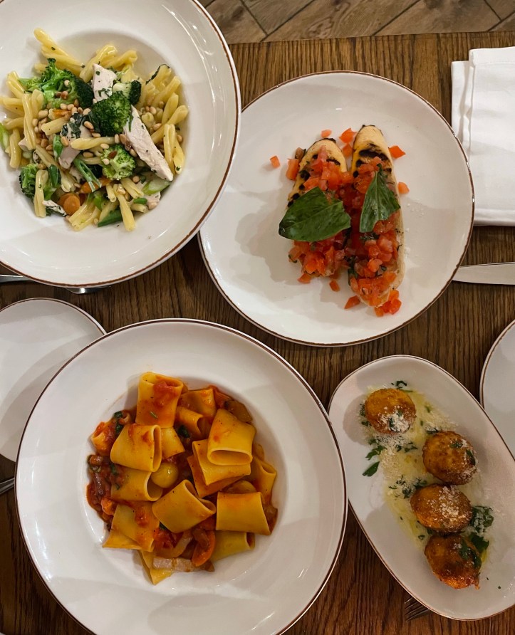 For our “mains” we shared Casarecce Con Pollo (Grilled Chicken, Seasonal Vegetables, Cream, Matured Italian cheese and pine nuts) and Paccheri All’Amatriciana (Pork cheek guanciale, vine ripened cherry tomatoes, chilli & basil). I absolutely loved the chicken pasta dish. Sometimes I just want a nice chicken pasta with lots of veg in it and this hit that spot perfectly. It was lovely and creamy but also refreshing due to the vegetables. There was lots of it but I forced every last bite down because it was so delicious. The pork cheek pasta was also delicious and was Ben’s favourite. The hint of chilli was lovely but could have been stronger for us spice fans. It was all cooked very well.