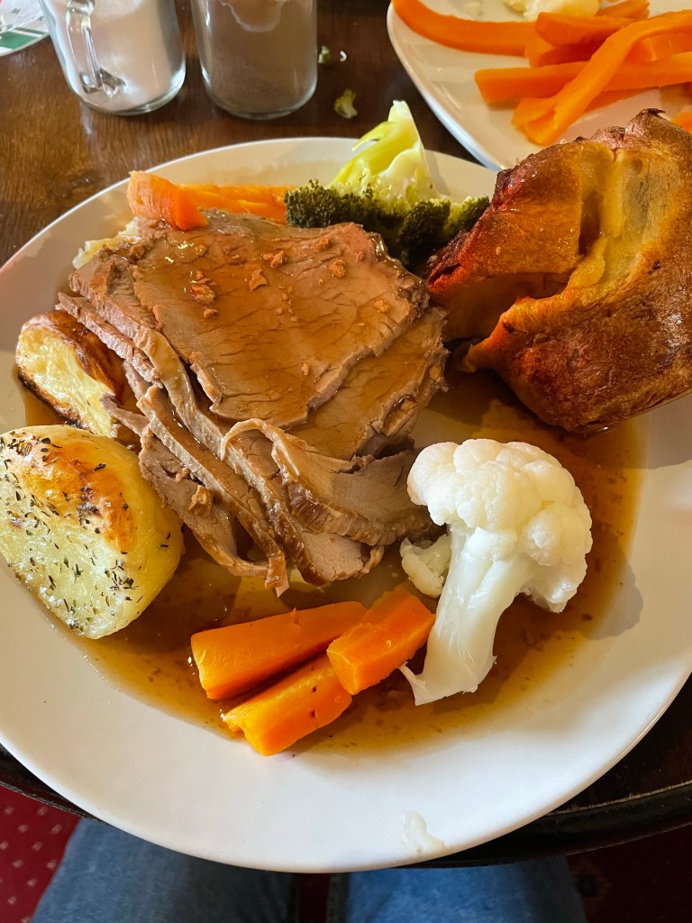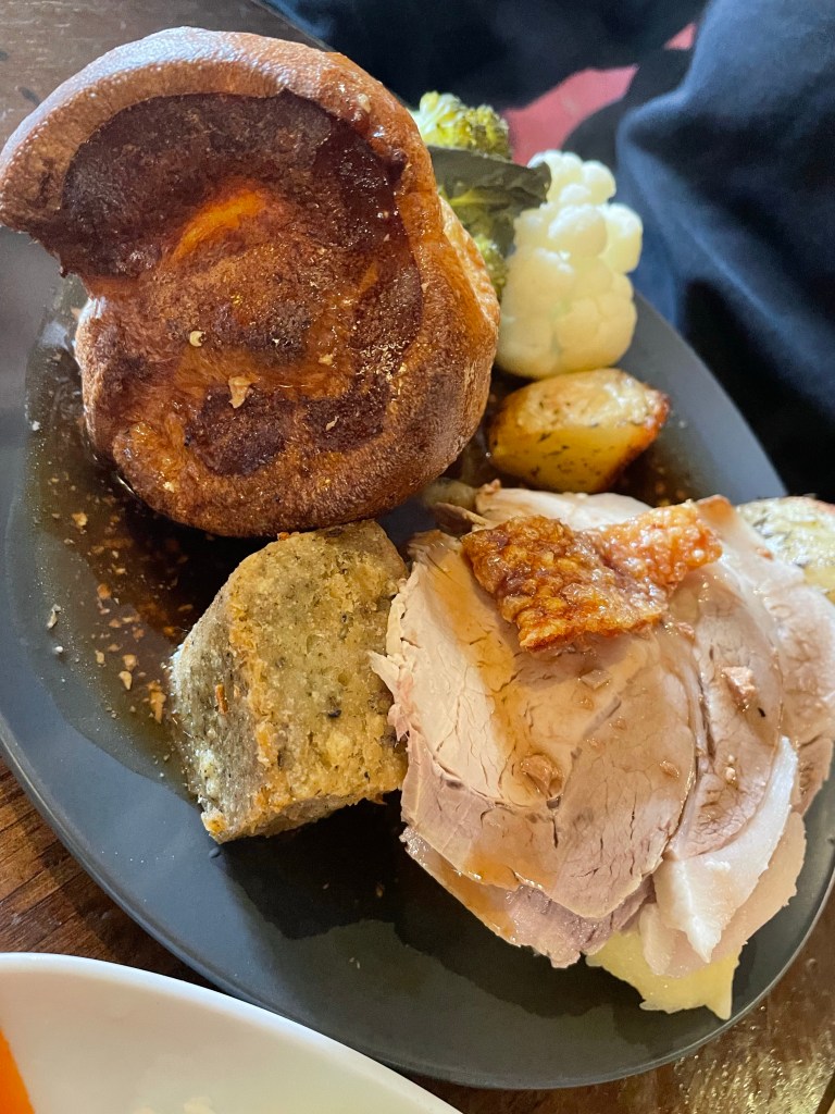 I chose the beef and got LOOOOADS of meat, all accompaniments were great too, maybe the veg could have done with a few minutes less, but my plateful was delicious. Ben chose the pork which came with stuffing and a little bit of crackling and he also thought the whole meal was very good.
