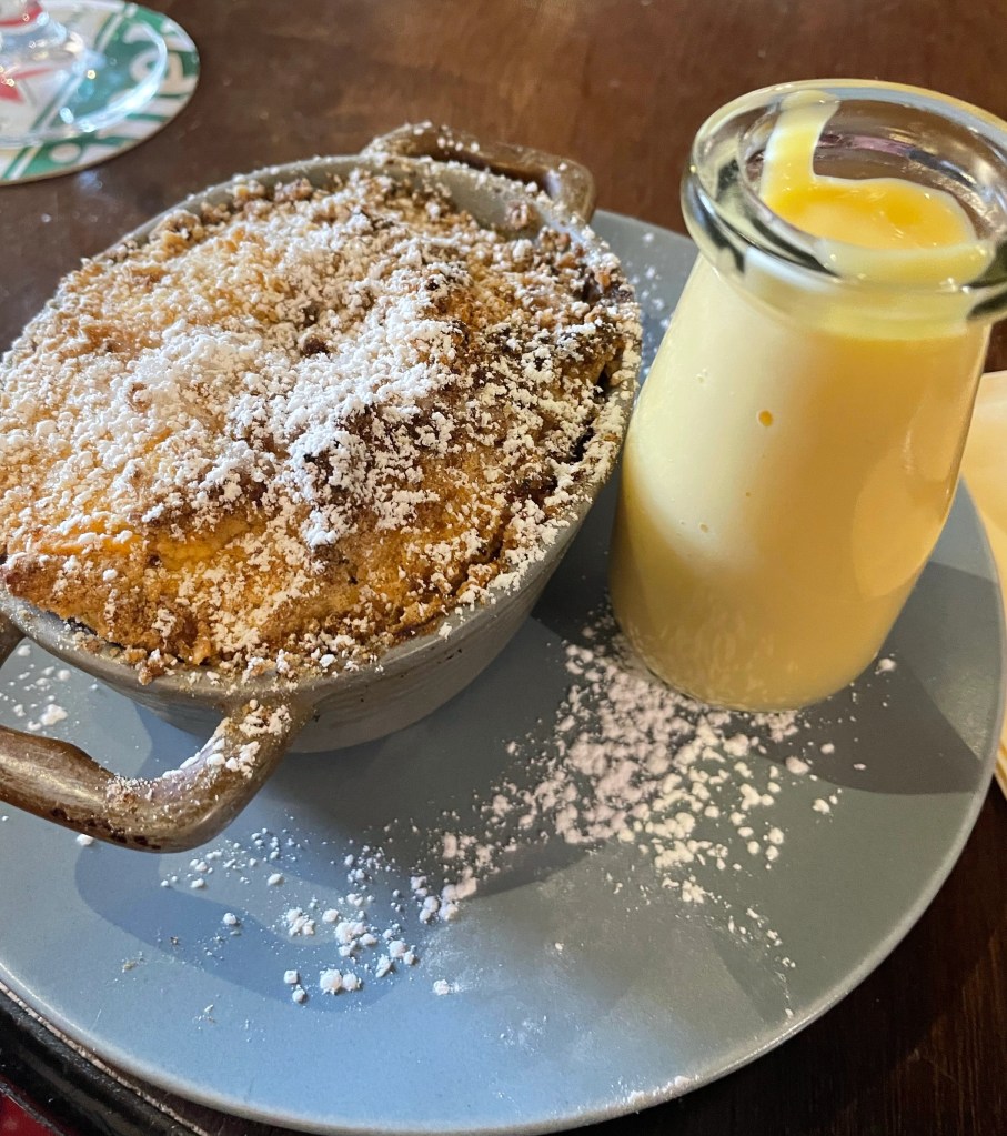 Even though I was full, I really enjoyed the atmosphere of this cosy pub so we stayed a while and I ended up ordering a dessert – I was really in the mood for a crumble, so that’s exactly what I ordered – Homemade Blackberry & Apple Crumble with custard. The presentation of this was so cute and the whole dessert tasted so good, very sweet & comforting, just what I wanted from a dessert! I ate every last bit.