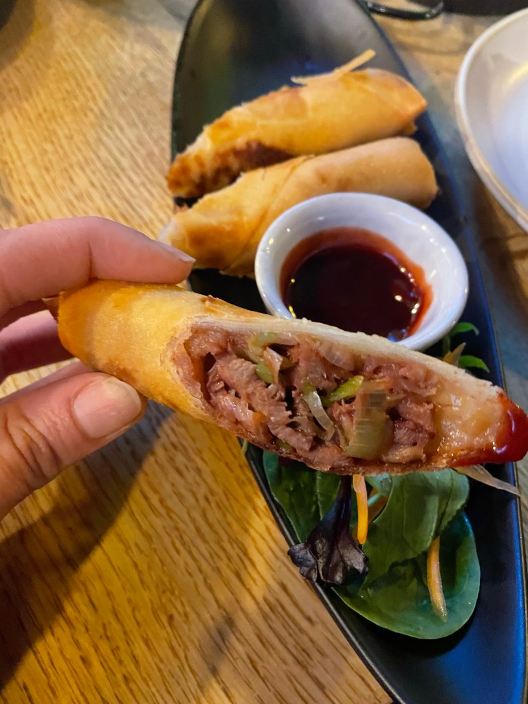 - Pro Pia Ped / Duck Spring Rolls– A good portion of 4 pieces, very crispy pastry and packed full of tasty ingredients, served with a dip of hoisin sauce. A bit of a favourite of ours when it comes to Asian food.