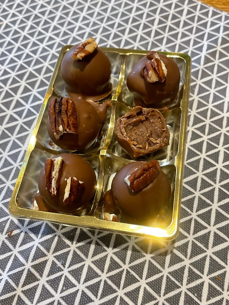 ⭐️Maple & Pecan Truffles – maple syrup ganache combined with crushed toasted pecans. Coated in milk chocolate & finished with a toasted pecan 👌🏼
