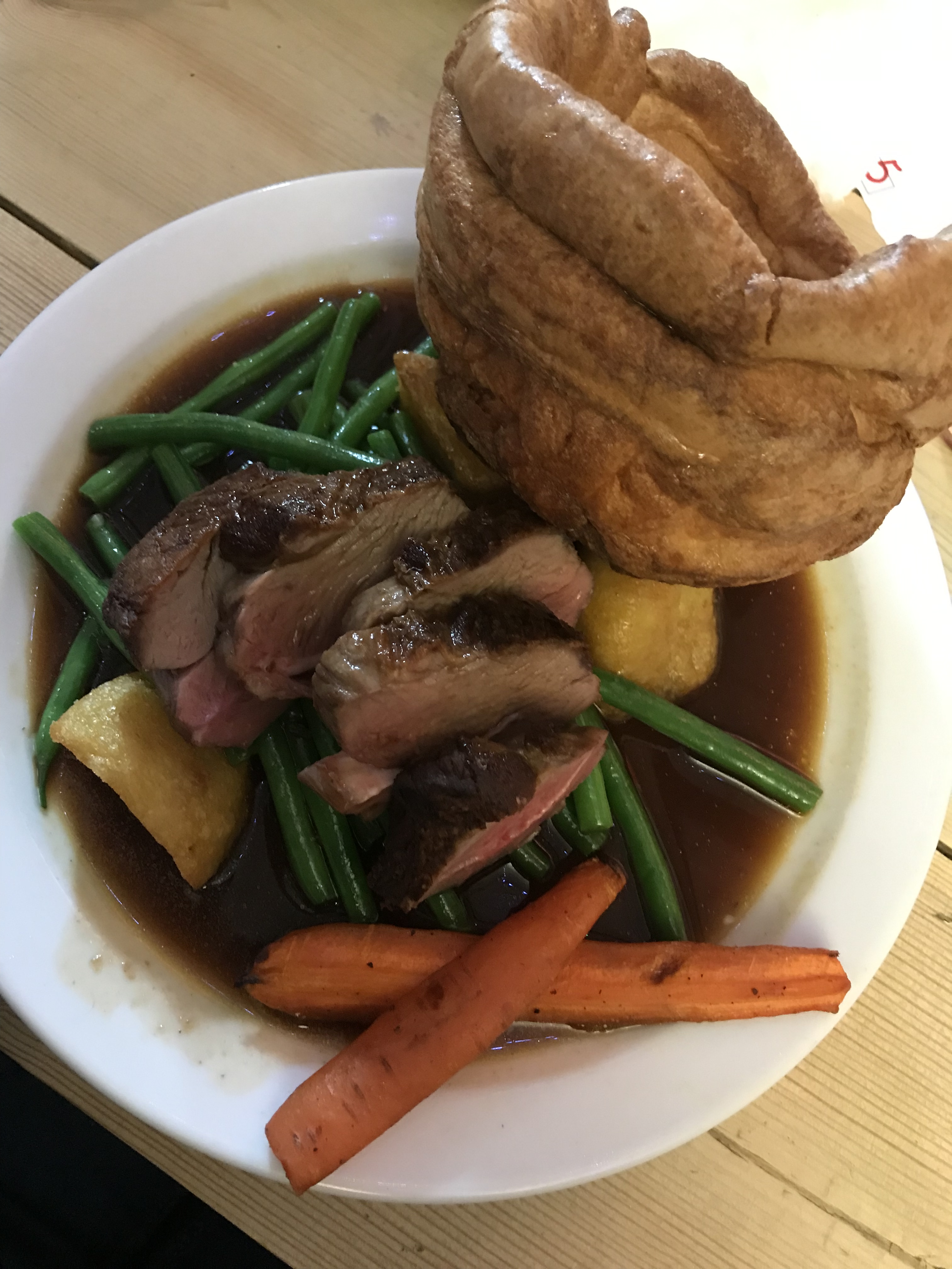 A further 5-10 minutes later and another server said they were plating ours now…. When the food finally arrived, the portions were decent and we did enjoy the food. Meat, veg and roast potatoes sat in lots of gravy topped with a large Yorkshire Pudding, nothing there to not enjoy. However the wait and the lack of service had dampened our enjoyment by then. The lamb and chicken was cooked beautifully, the beef was a little tough and fatty. We tried some of the side dishes; the cheesy leeks are gorgeous as is the sweet potato mash. I didn’t think much to the broccoli pesto side dish unfortunately.