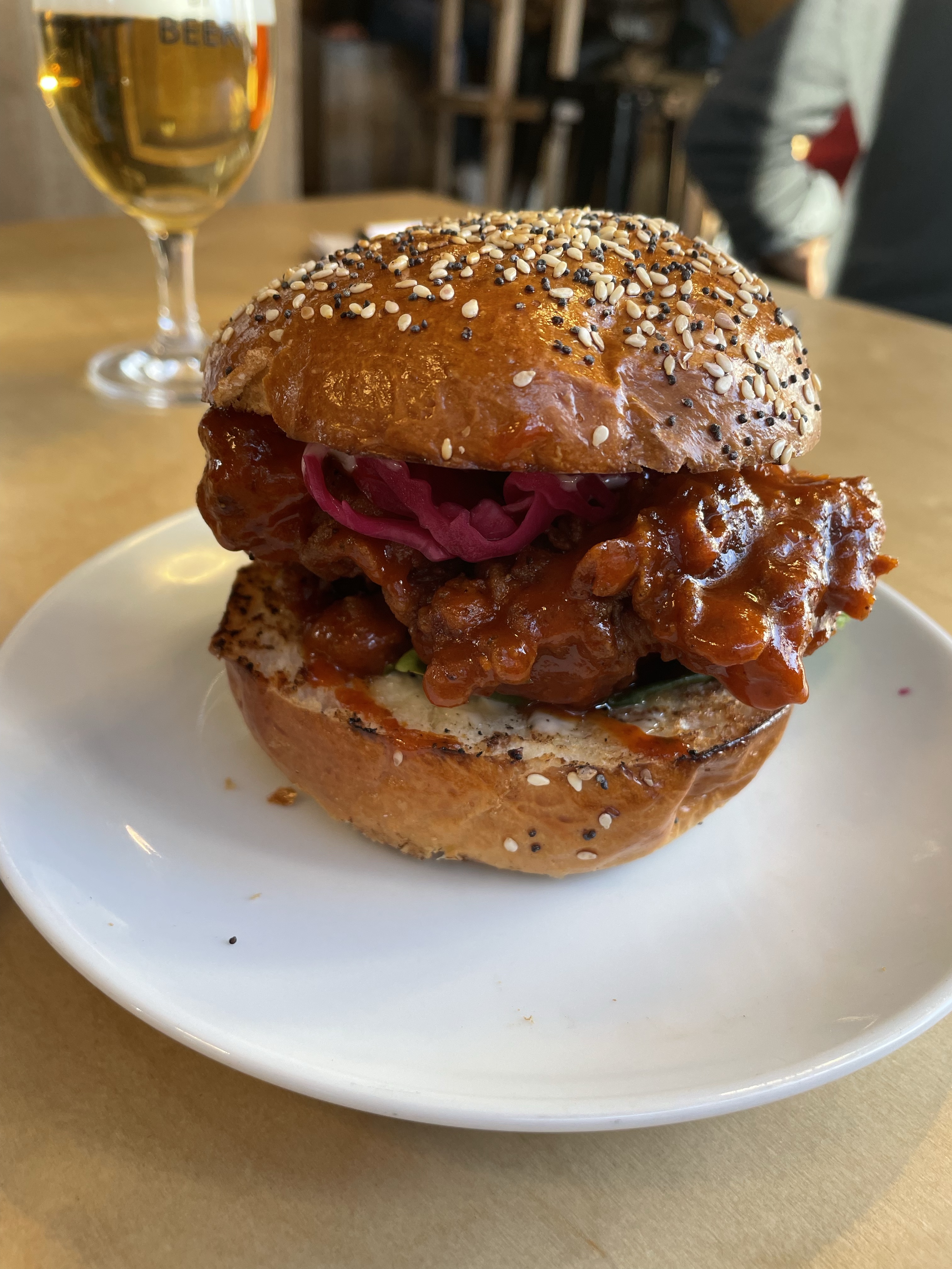 • Sriracha Chicken Burger £10.40 – Fried Chicken, Sriracha Butter Sauce, Aioli, Lettuce, Pickled Cabbage, Potato Brioche – The chicken coating was perfectly crispy and the whole thing was delicious. The burgers are just the right size, not too messy or over the top, just right.
