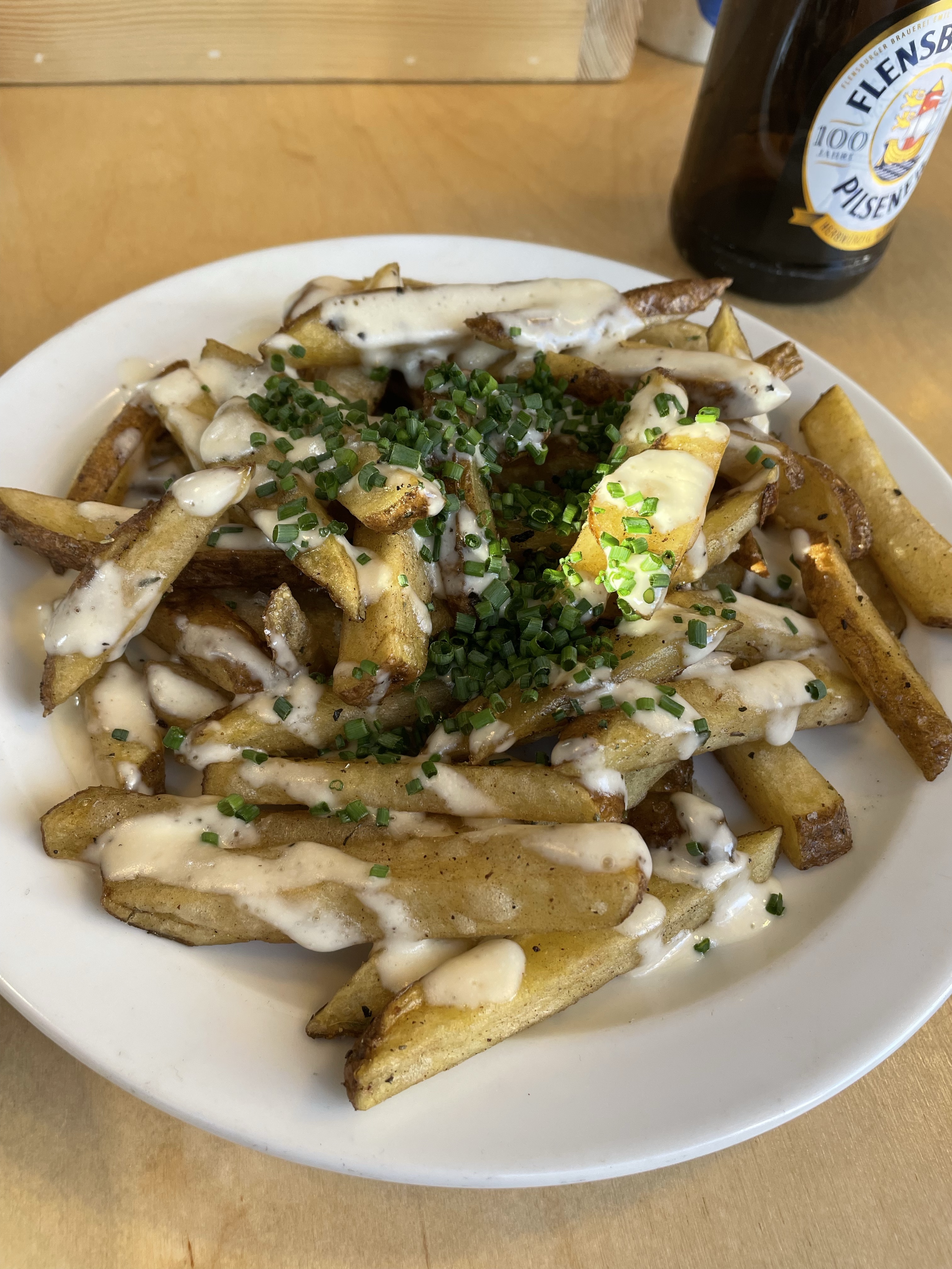 • Brunswick Chips £4.50 (v,gf) – Hand Cut Double Cooked Chips, Aioli, Chives, Brunny Salt – These weren’t bad, the Alioli was VERY garlicky and tasted a bit floury to me. I would definitely recommend sharing the portions of chips over ordering one each.