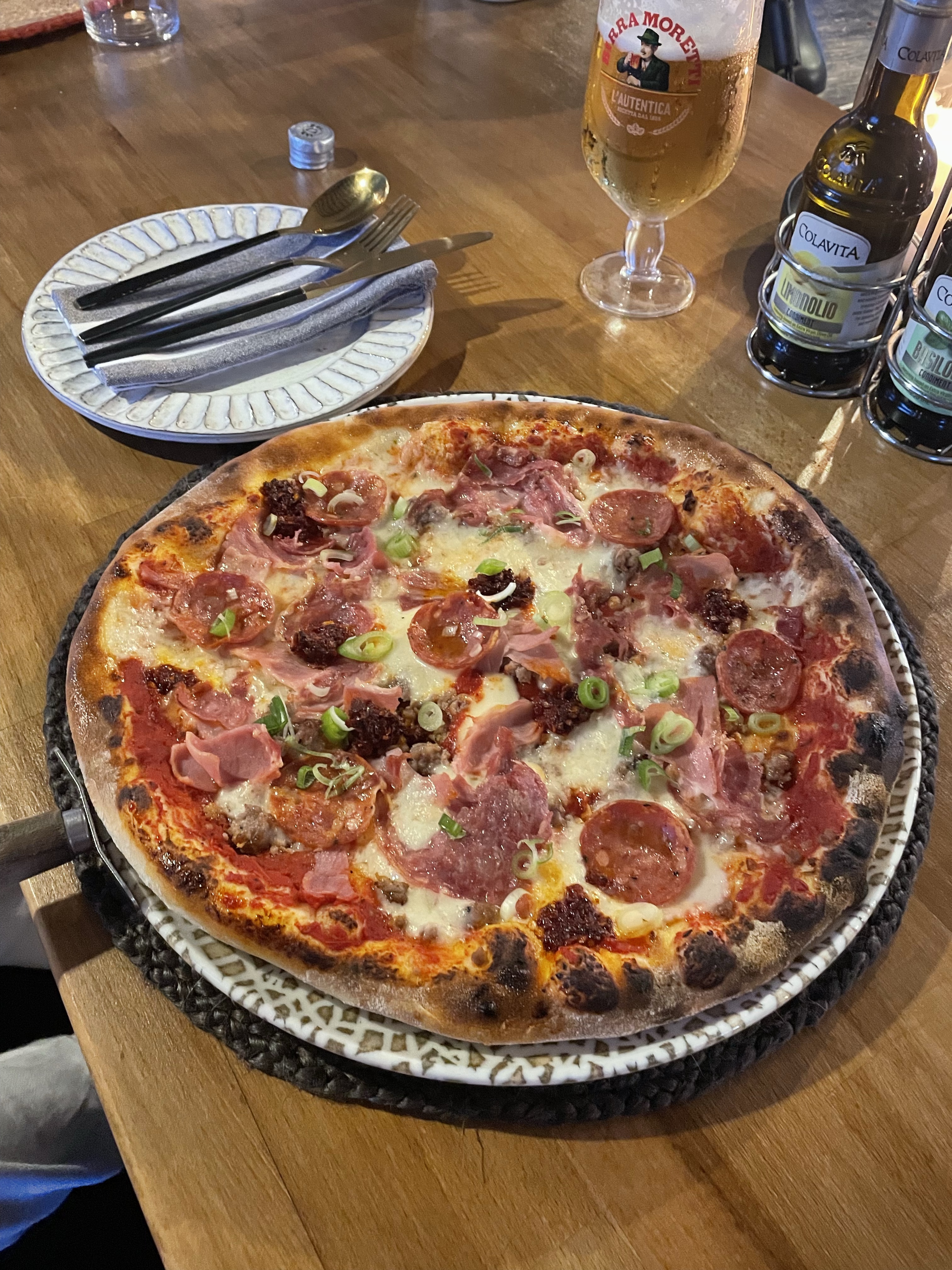 ⭐️Meat Lover’s Pizza; Pepperoni, Salami, Tuscan Sausage, Nduja, Ham, Spring onion. Could you get any more meat on one pizza?! All ingredients complimented each other though, it was bloody gorgeous!