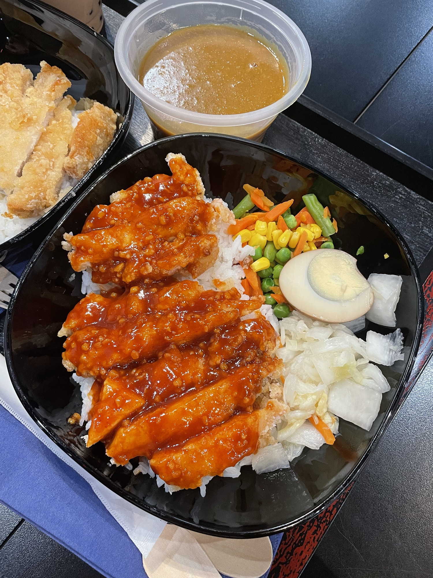 - Korean Fried Chicken Bento – this chicken was sooo crispy and the coating had an amazing tangy and spicy taste to it. This was served with a tea-braised egg, rice and some pickled veg. Portion was aplenty. A great dish