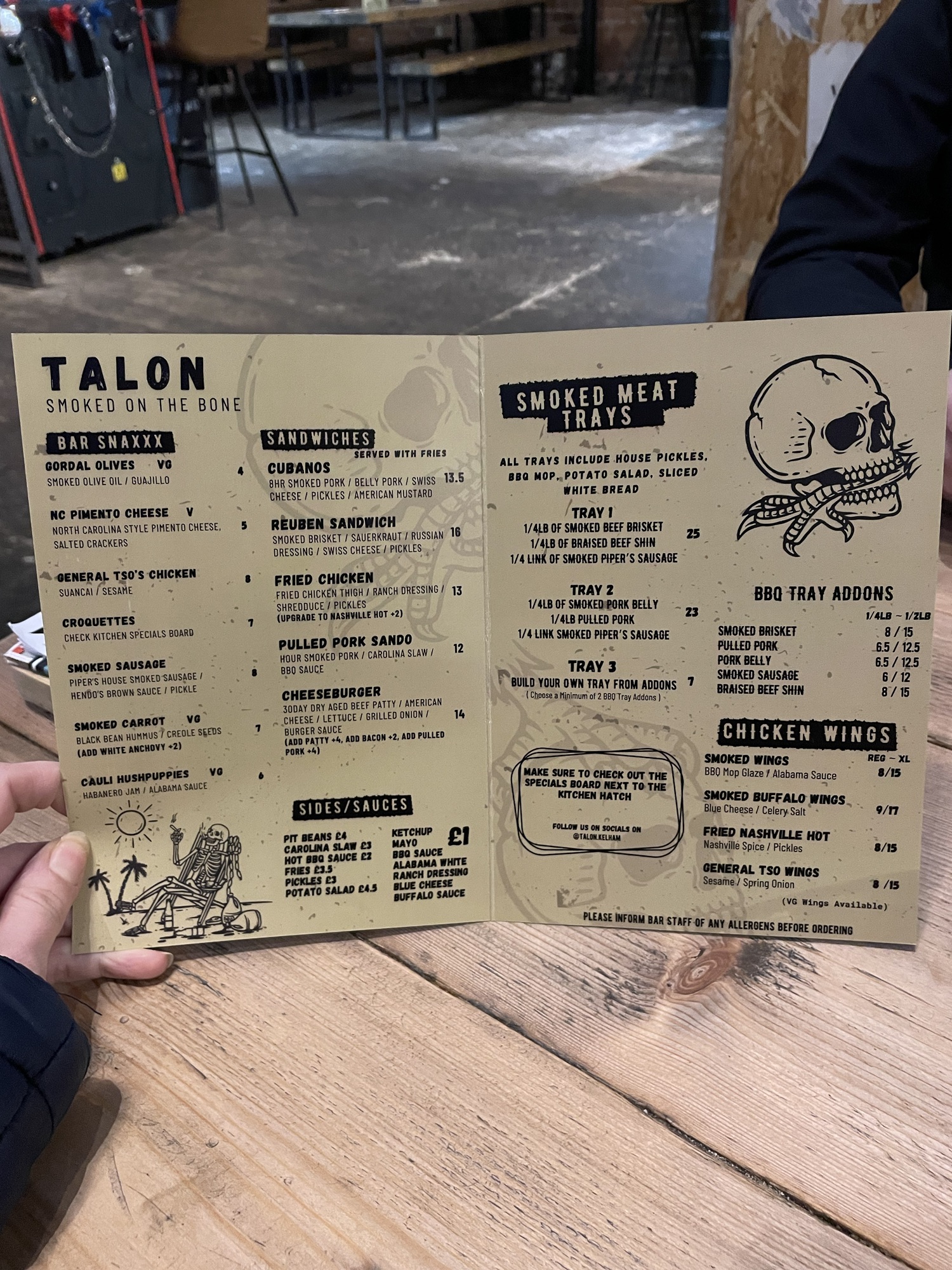 We were kindly invited to the soft launch of Talon a few weeks ago to try some of the amazing looking scran out. We enjoyed;