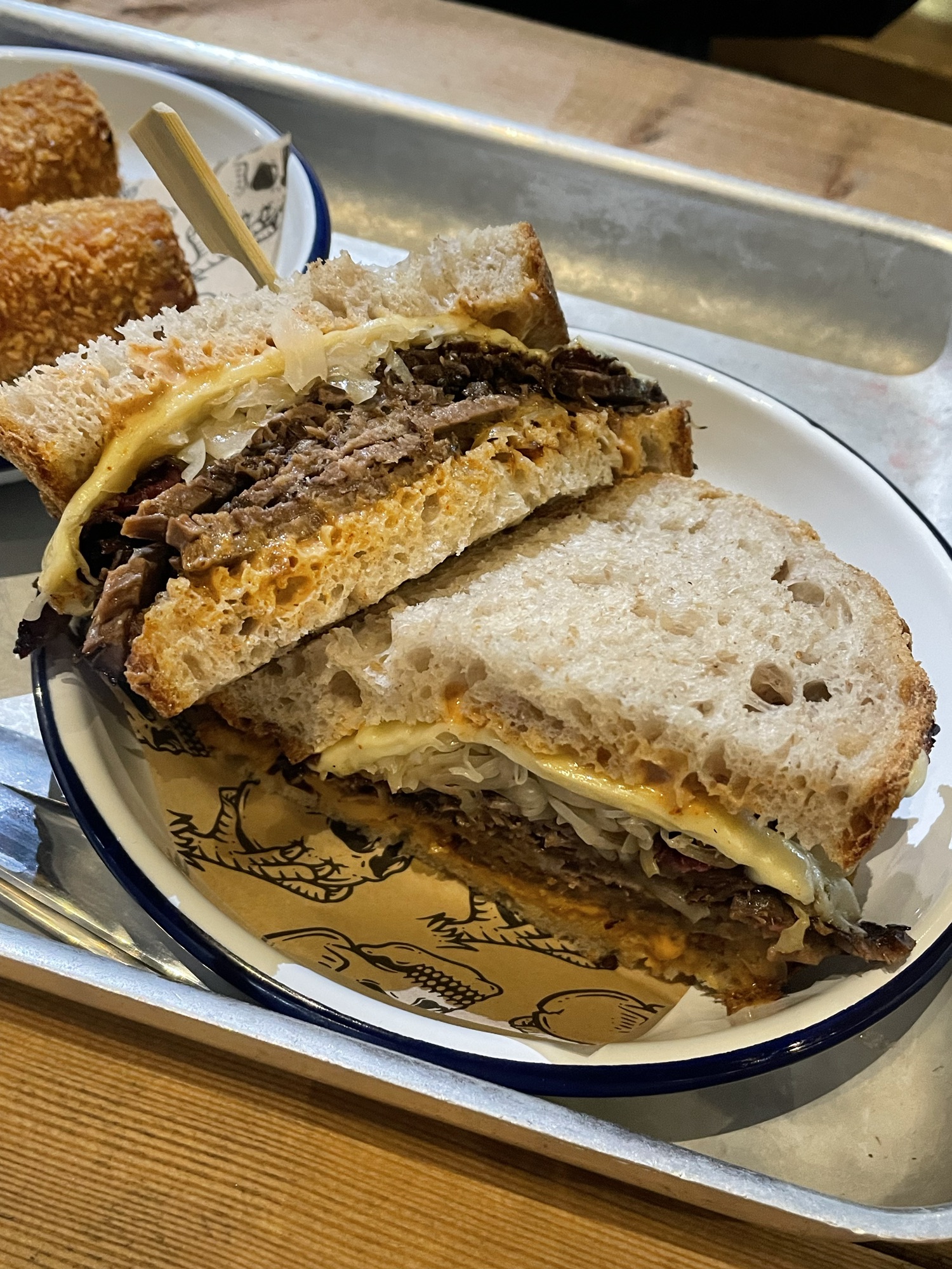 - Reuben Sandwich with fries – packed FULL of meat with sauerkraut, cheese & pickles. A reyt doorstop of a sarnie that was delicious.