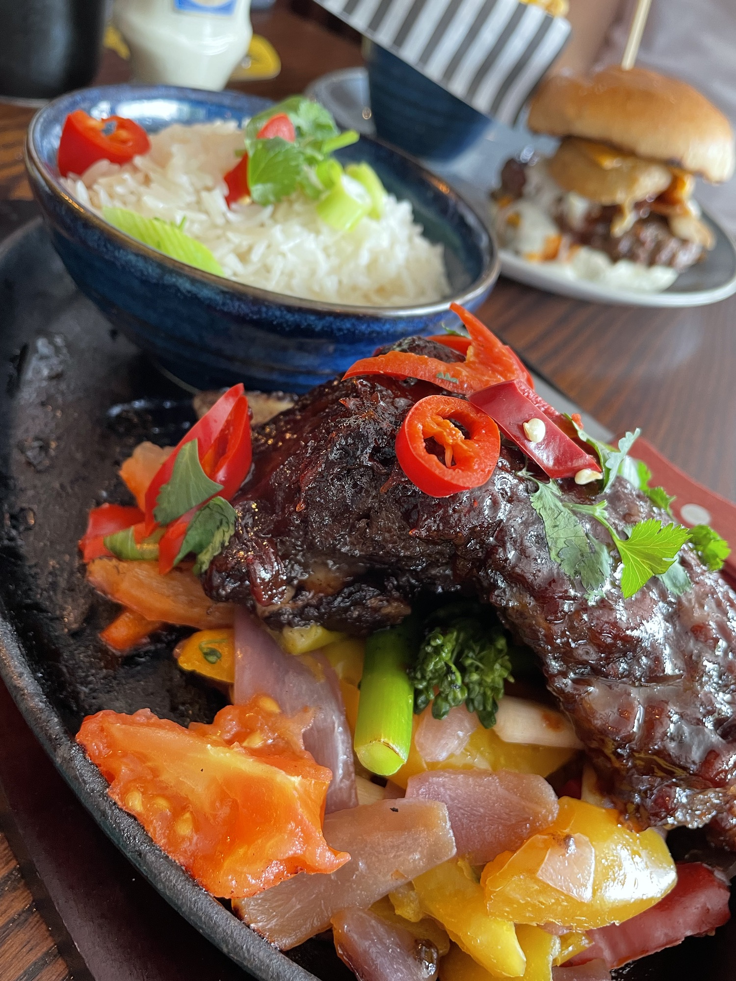 - NEW BBQ Beef Rib Skillet (£14.99) – A succulent two-bone BBQ beef rib topped with chilli, spring onion and corlander, served on a bed of sizzling vegetables with basmati rice (you could also choose fries instead). The rib was melt in the mouth delicious. A tad bit fatty for me in places but the whole skillet and rice went so well together!