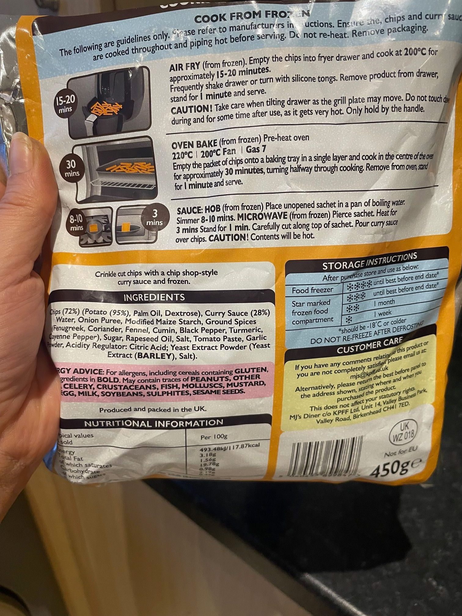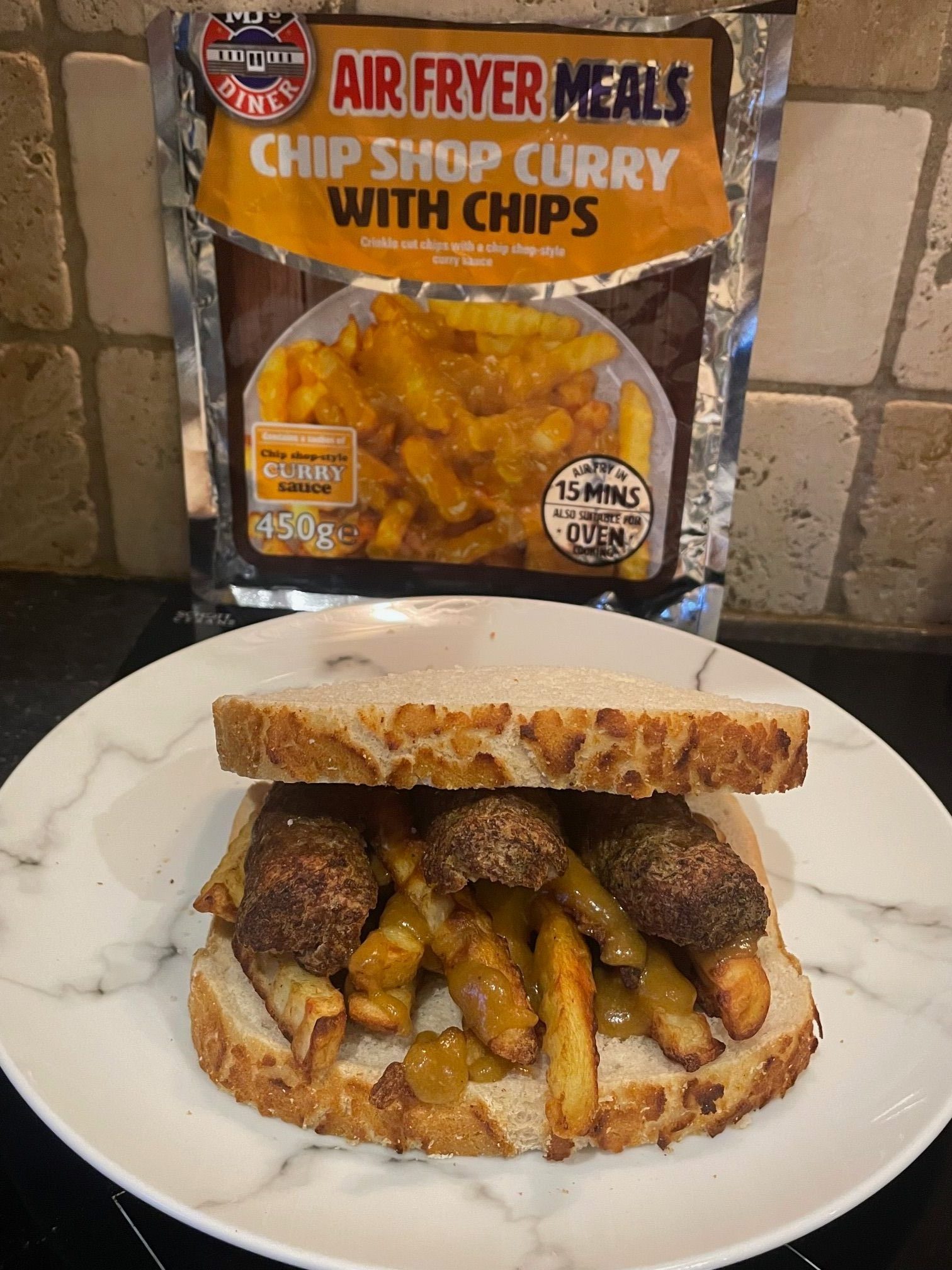 - Chips with Chip Shop Curry Sauce – We shared this pack between two of us and added bread and lamb koftas to make some mammoth chip butties. This was really easy to cook and was ultimate comfort food on a Friday evening! The sauce comes in its own packaging inside the pouch, and is very easy to warm up.