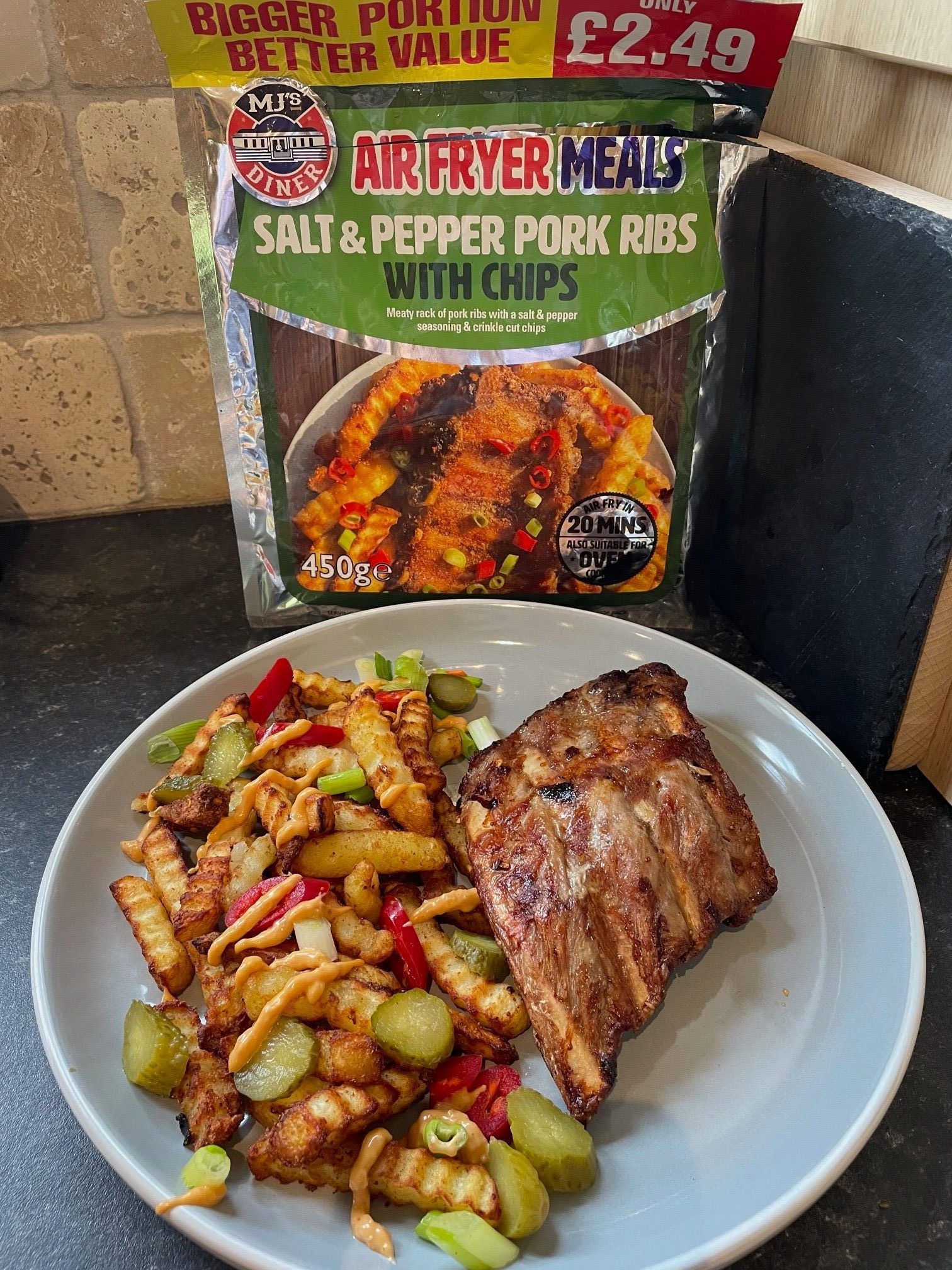 - Salt and Pepper Pork Ribs and Crinkle Cut Chips – initially it looked like there wasn’t much meat on these ribs, but I soon found out there was enough. I added some garnish to the chips such as chillies, spring onions, pickles and spicy mayo – this was a proper indulgent meal for one on a weeknight and I really enjoyed it.