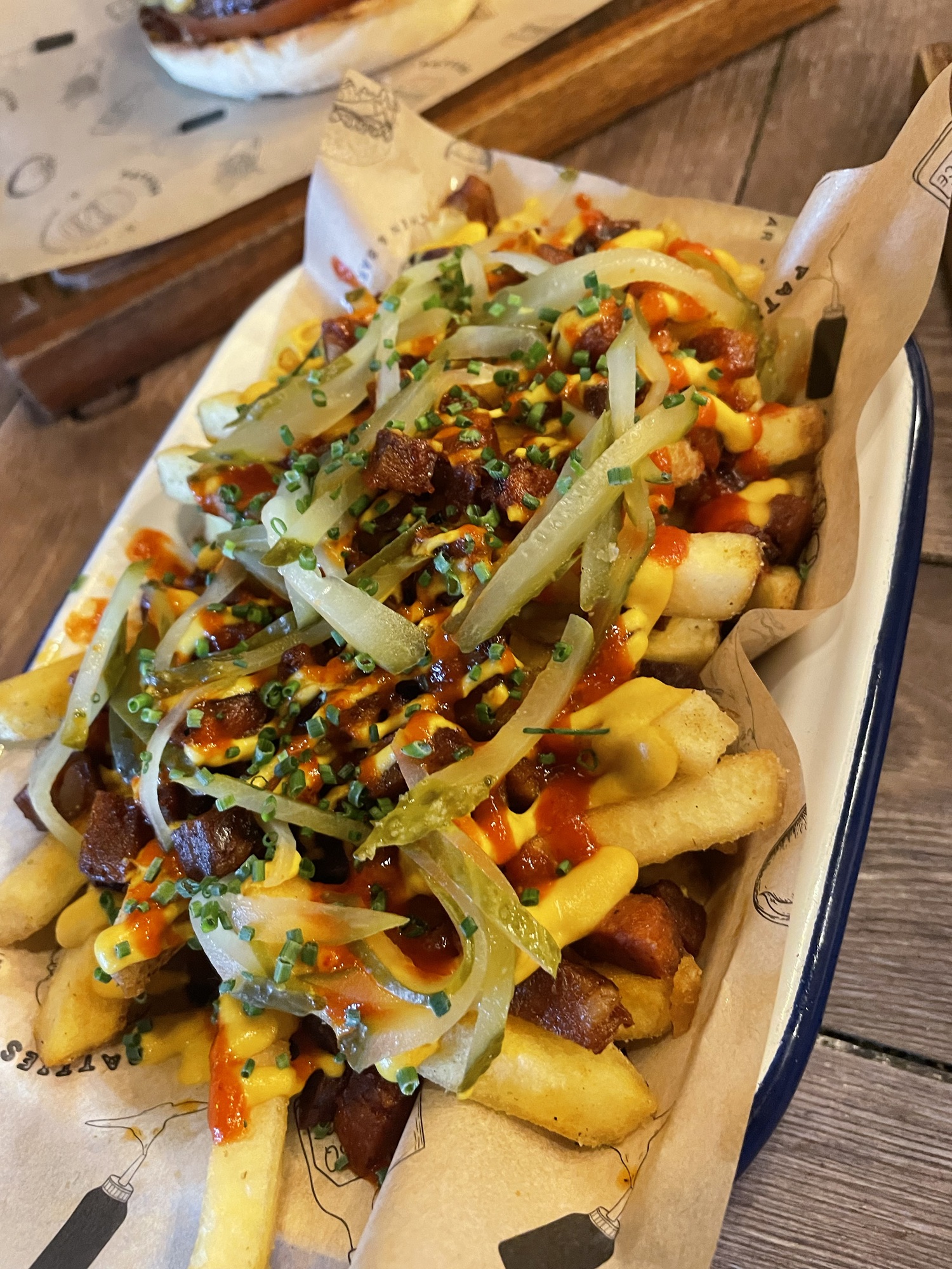 - large Buffalo Chicken Fries with extra cheese sauce (£13.95)