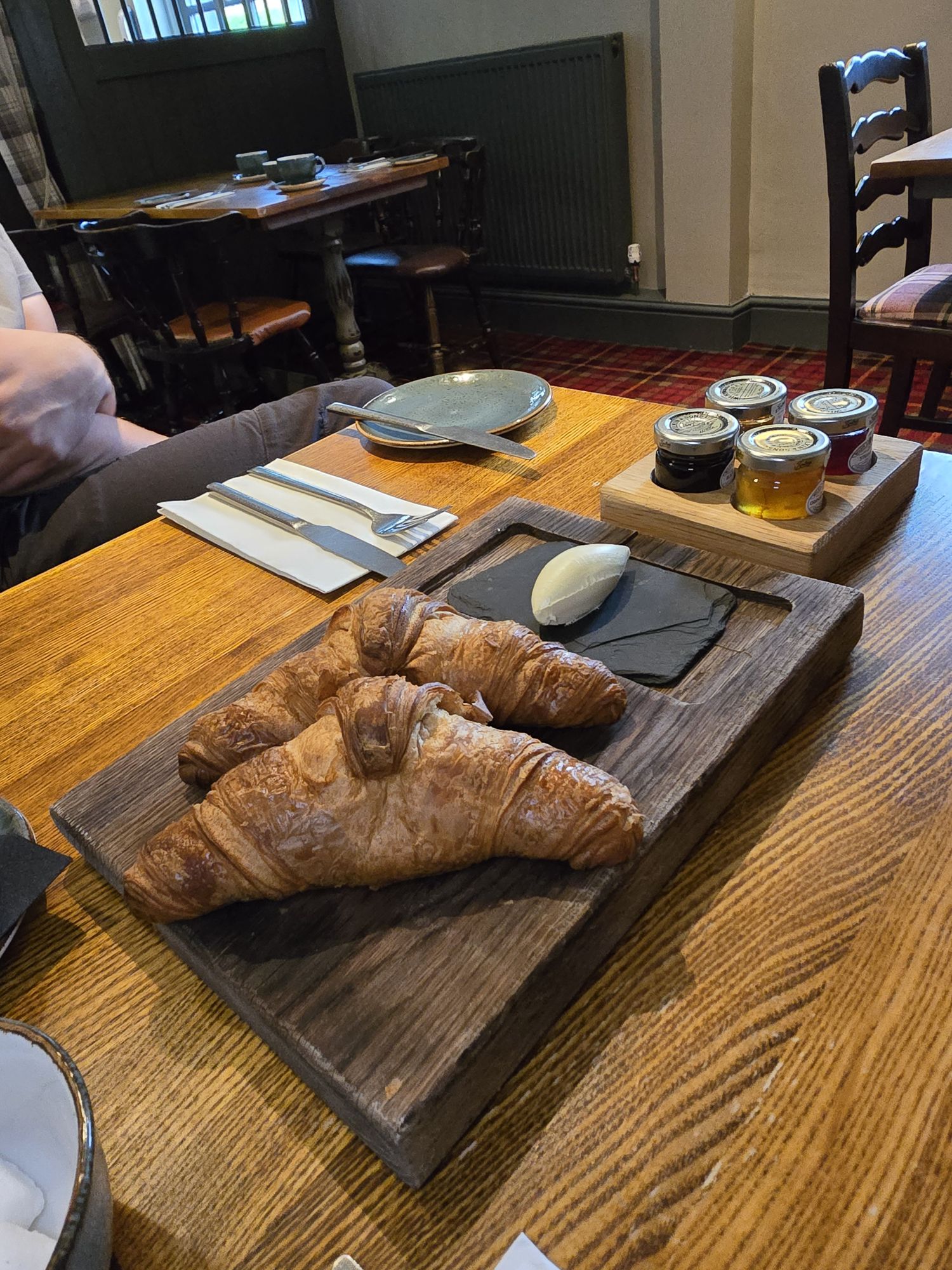 - Freshly Baked Croissants served with butter & preserves (£3.25) – these were warm and crisp and a great start to our breakfast