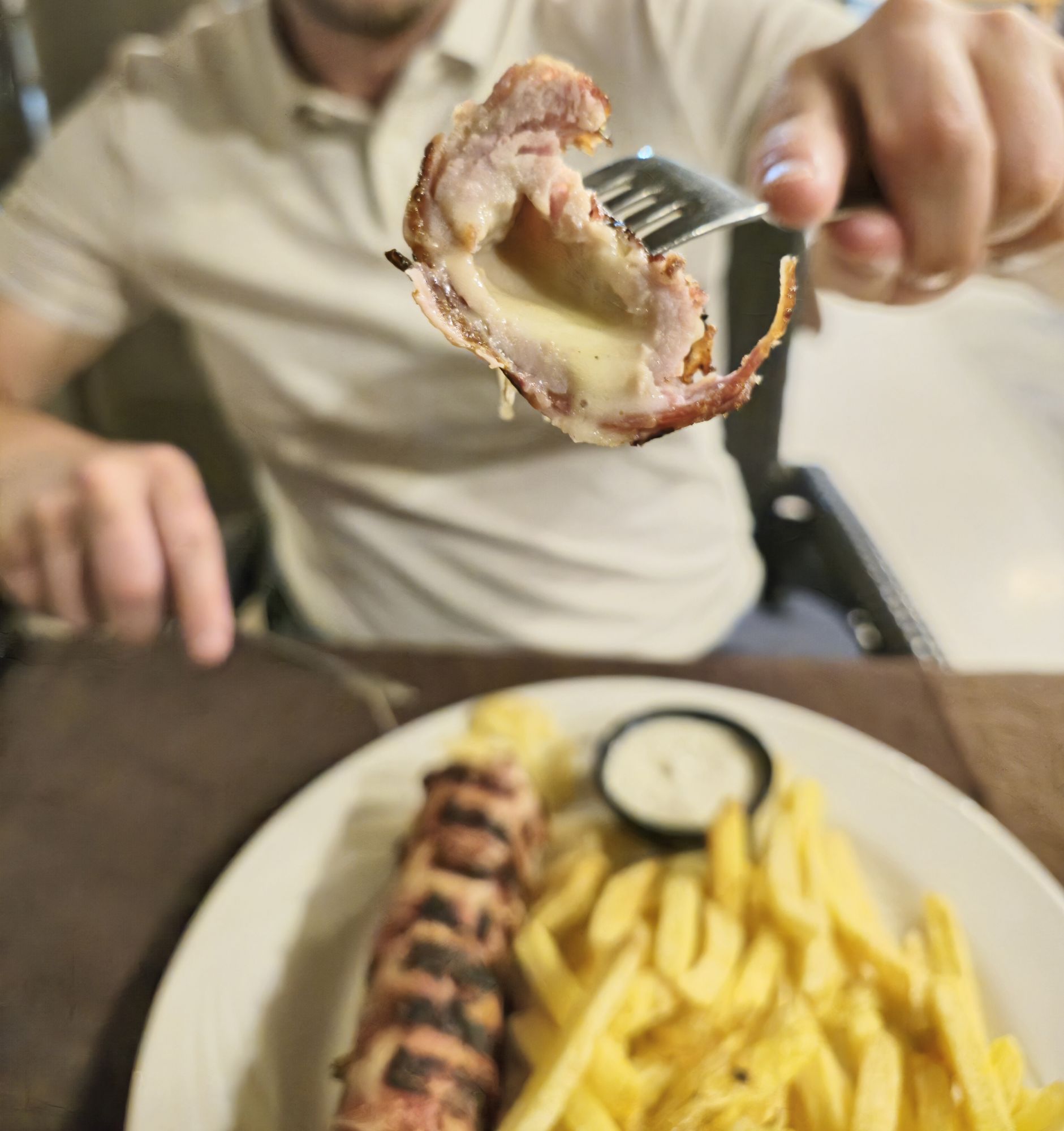 13 & 14. Last but not least, more massive portions of stuffed grilled meat this time at Pizzeria Scala in Lapad. Lots of decent meals served here but Ben was very happy with this Stuffed Pljeskavica – minced beef filled with kajmak (clotted cream) and cheese.