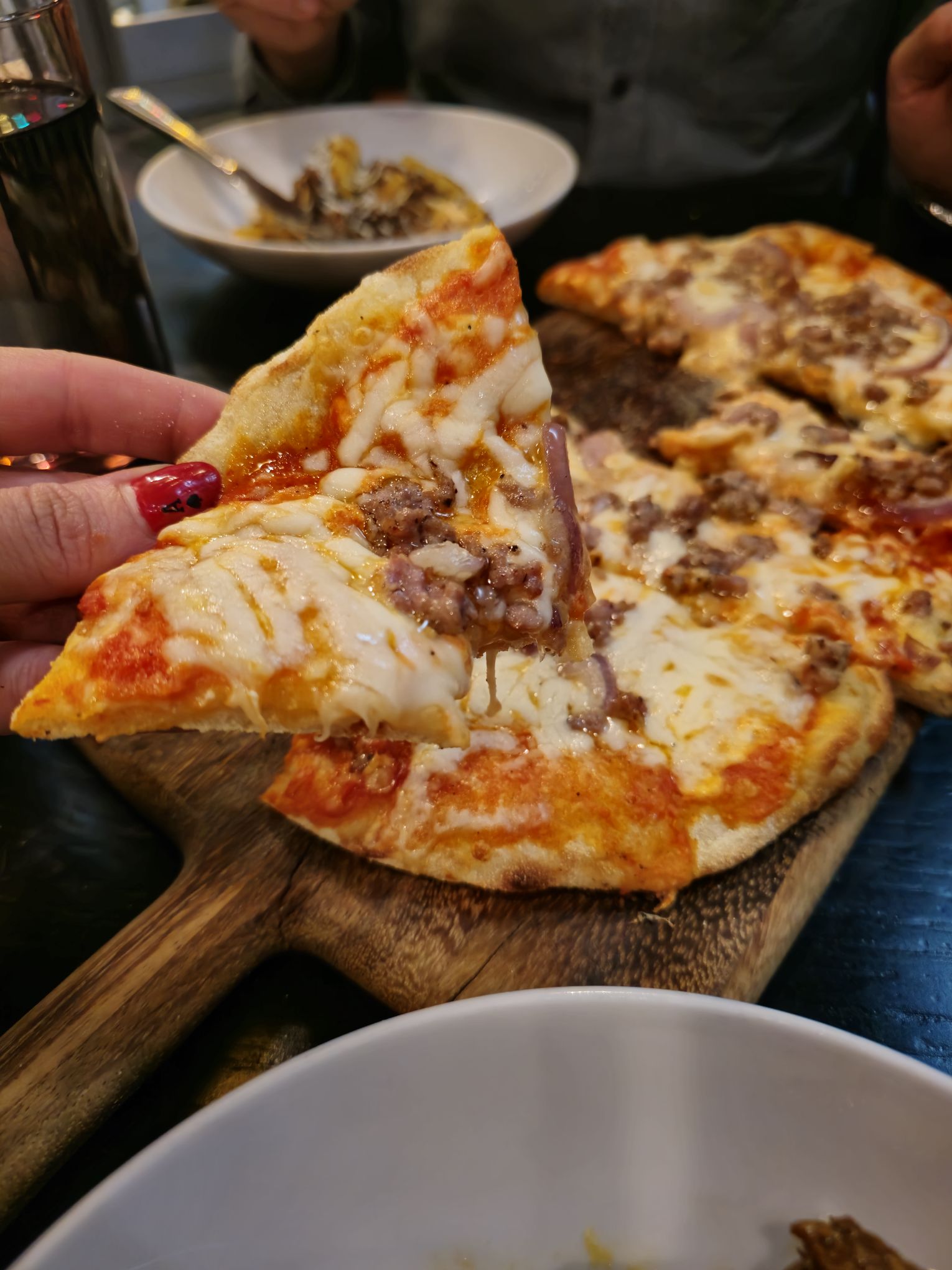 - Pinsa Salsiccia – mozzarella, sausage and onions. This was a lovely pizza to share with lots of toppings