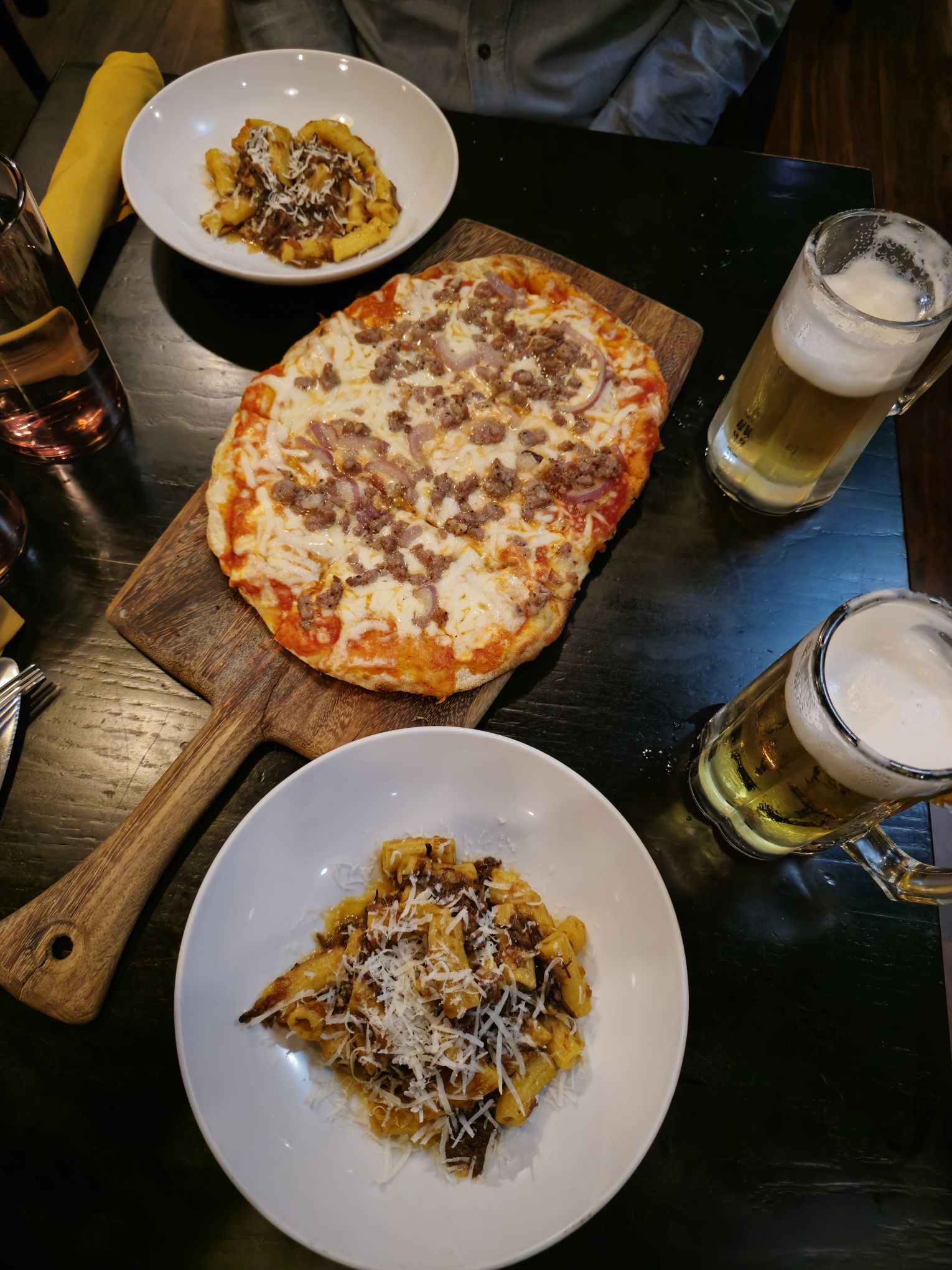 We chose this cosy looking place that seemed to be popular with the locals, and it was a great choice! Although the restaurant was busy, the restaurant owner got us a table quickly, and we immediately felt welcome. We decided we wanted to share a pizza and pasta dish and went with;