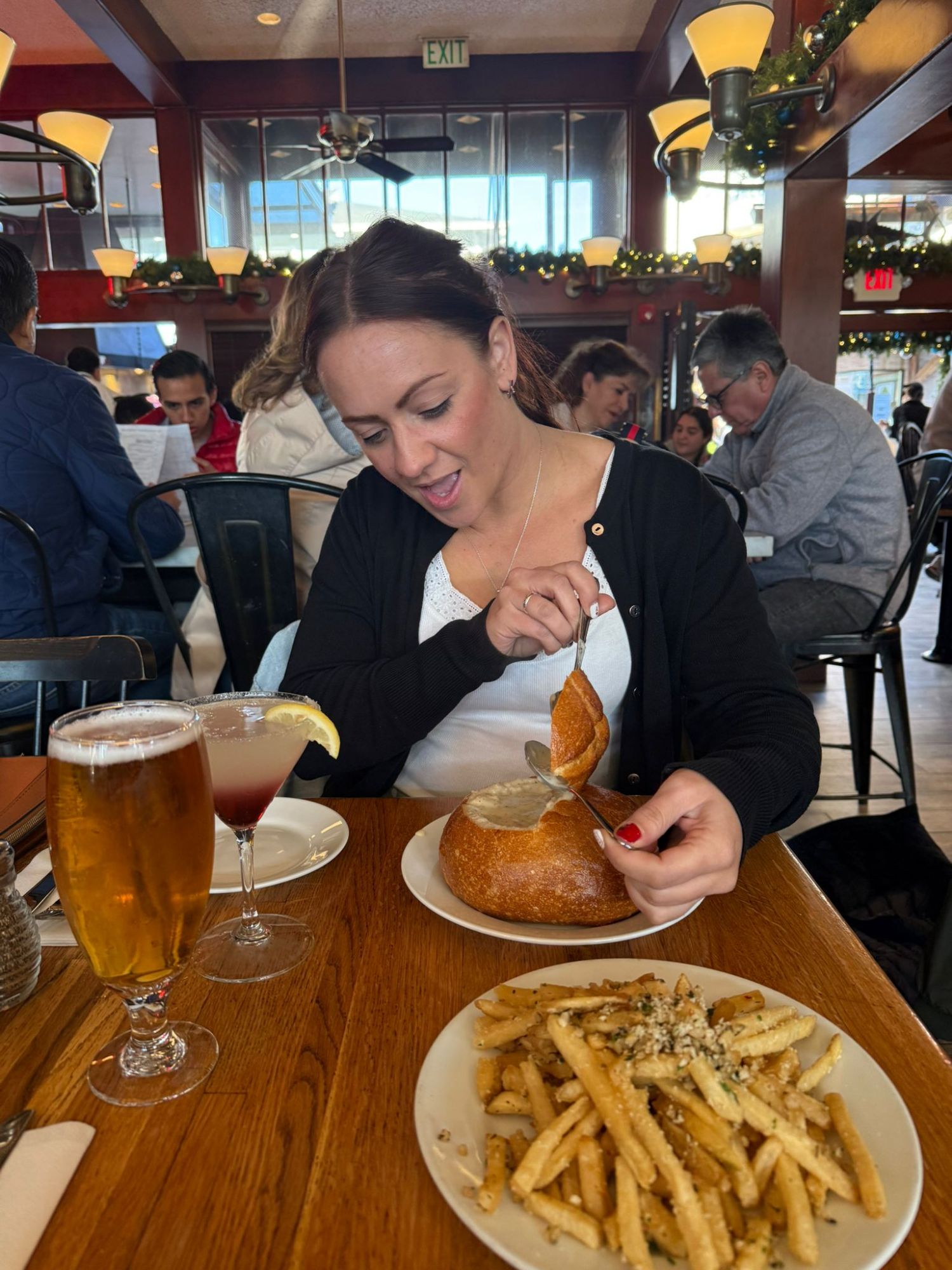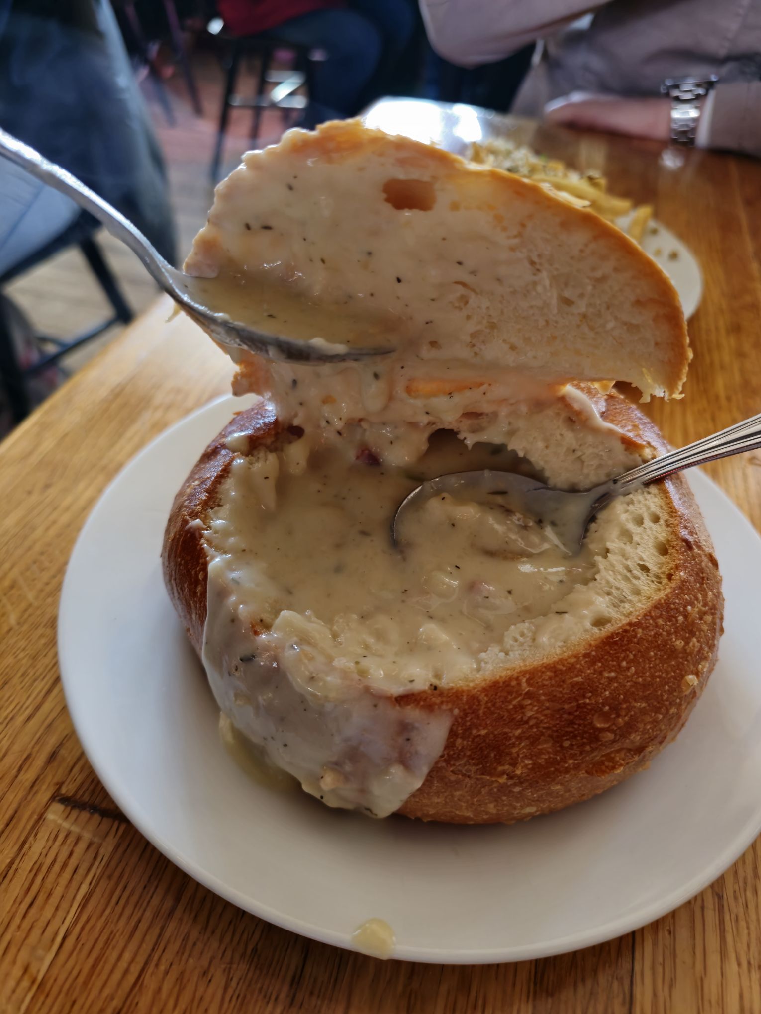 A fellow foodie @scoff.menu recommended me to try a clam chowder bowl down at Pier 39 in San Fran, and I can’t thank them enough. This meal is comforting, tasty, fun to eat out of the bread bowl – we ate every last crumb. They’re available in a lot of local places to the pier, we headed into the warmth at Pier Market Restaurant. We also shared some garlic fries which appear often on menus in this area. Wow, they were packed with a powerful garlic punch!! Highly recommend doing the bowl and fries as a lunch between 2.