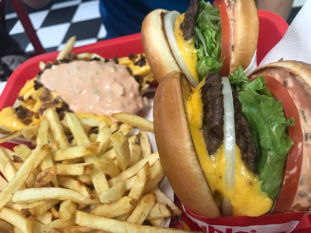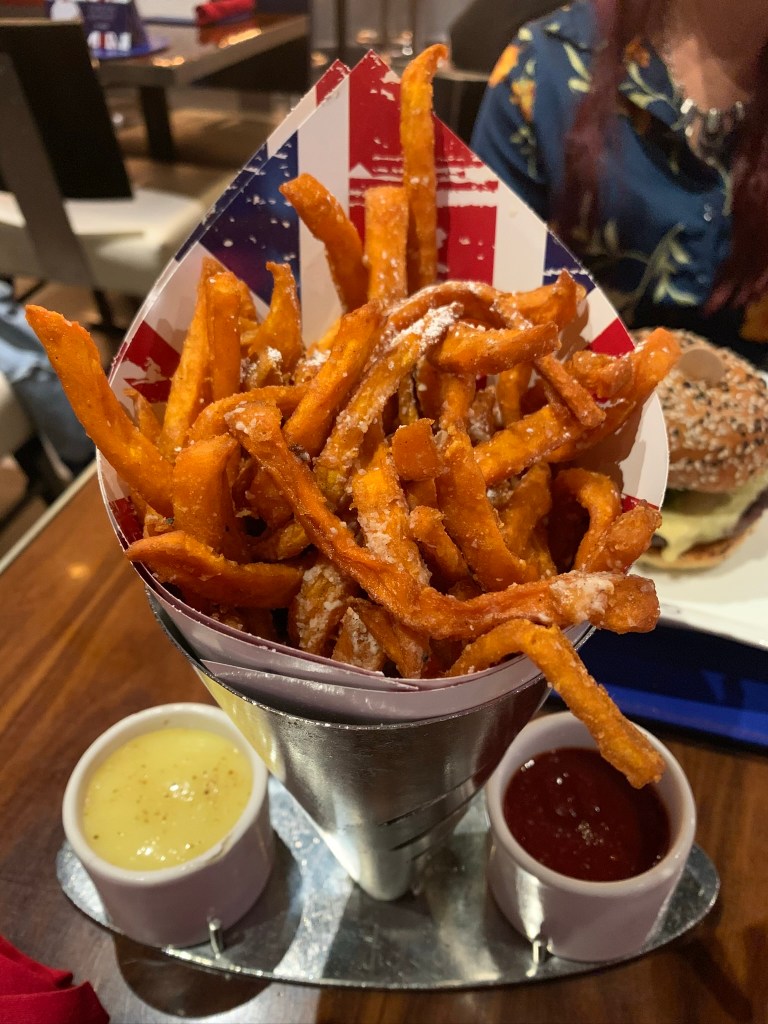 In-N-Out Burger β so it felt like kind of βa thingβ to visit here as it seems to be very popular amongst social media, and my group of friends, so I had to try it!Β Itβs a fairly typical American fast-food burger joint with a fairly small menu, but most likely because they know they serve good food that people want and they donβt have to over do their offer. One of the things that you wonβt see on offer, but it is available on a βsecret menuβ is Animal Style fries; fries topped with bacon cheese and burger sauce. Itβs a typical; order, take a ticket, get your own drink, wait for your number to be called and find a table sort of place. I have to say I did enjoy the food (despite having one of the worst hangovers), BUT one question I still had was, which is better; Five Guys or In-N-Out. Have to say, my personal answer is Five Guys. Despite this, give it a go if you like a decent burger & fries and want to say that youβve been! Located near the Linq hotel.